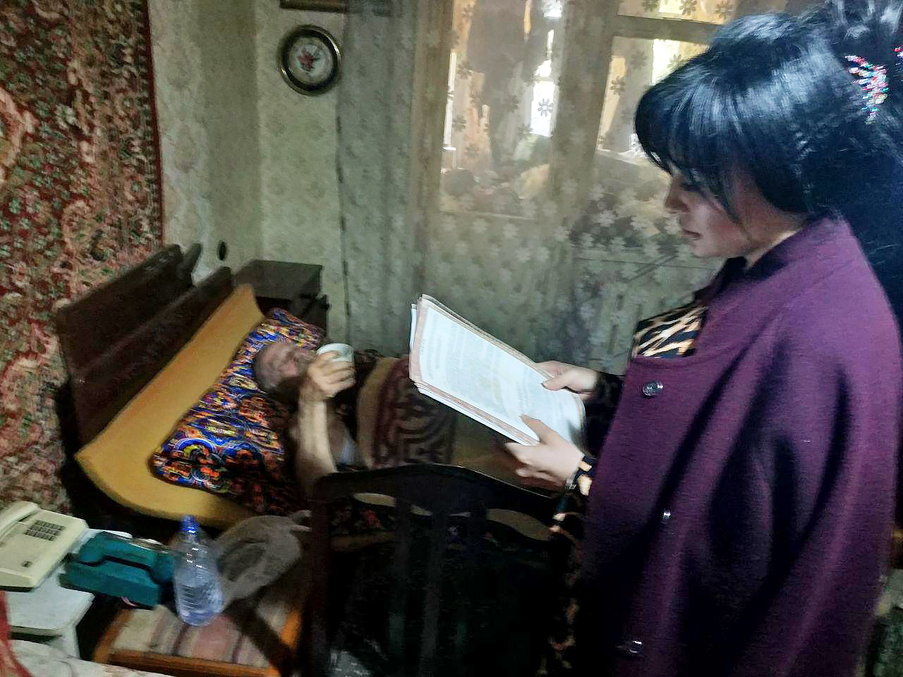 Сердобольный же сосед Древняка 6 мая обратился в махаллинский (квартальный – ред.) комитет «Ватанпарвар» («Патриот») с просьбой найти сиделку до приезда дочерей больного, и оставил свой номер телефона. 7 мая Белову позвонила некая Рахима Темирова. Она представилась сиделкой от махалли и попросила назвать ей адрес больницы, откуда следует забрать Ивана Сергеевича. В этот же день соседи видели, как пенсионера на носилках занесли в квартиру, о чём сразу сообщили его дочерям.