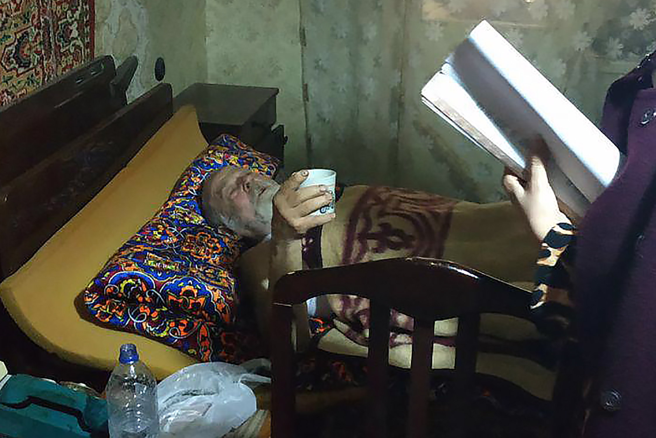 Сиделка наведывалась к подопечному со скоротечными визитами то ли раз, то ли два раза в день. Врача из поликлиники почему-то не приглашала, то есть амбулаторного лечения не проводилось, хотя боль в ноге у пенсионера не отступала. 10 мая о его состоянии узнала тетя сестер Салима Газиева, которая немедленно приехала и со своего телефона помогла поговорить ему с дочерьми (домашний телефон был отключен за неуплату, а на вопрос о мобильном Древняк ответил, что его украли). Во время разговора обсуждался их скорый приезд для последующего ухода за отцом.