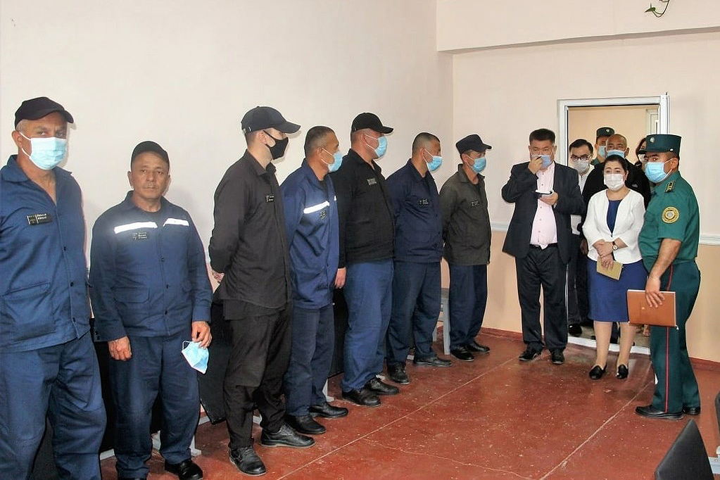 Рашид Кадыров в колонии (второй слева; работает в швейном цехе). Фото офиса омбудсмена Узбекистана