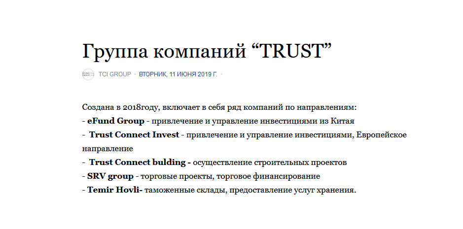 - Trust Connect Invest - привлечение и управление инвестициями, Европейское направление;