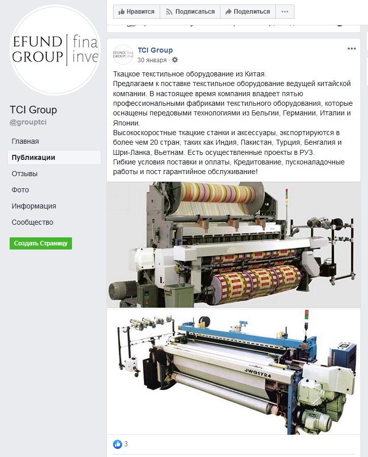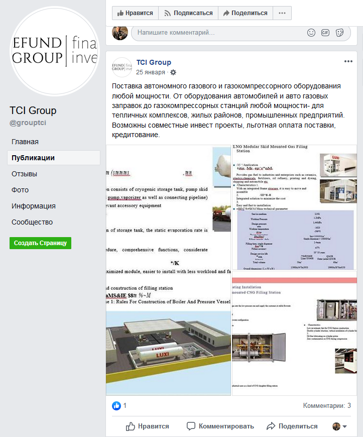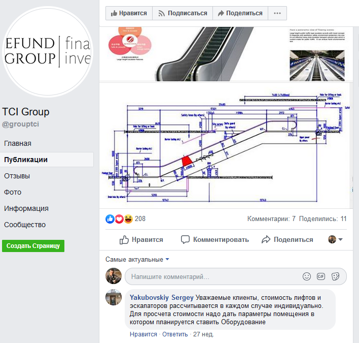 Зато вдруг исчезла страница компании TCI Group в Фейсбуке.