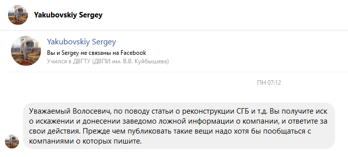 Однако этим он не ограничился и направил мне следующее послание: