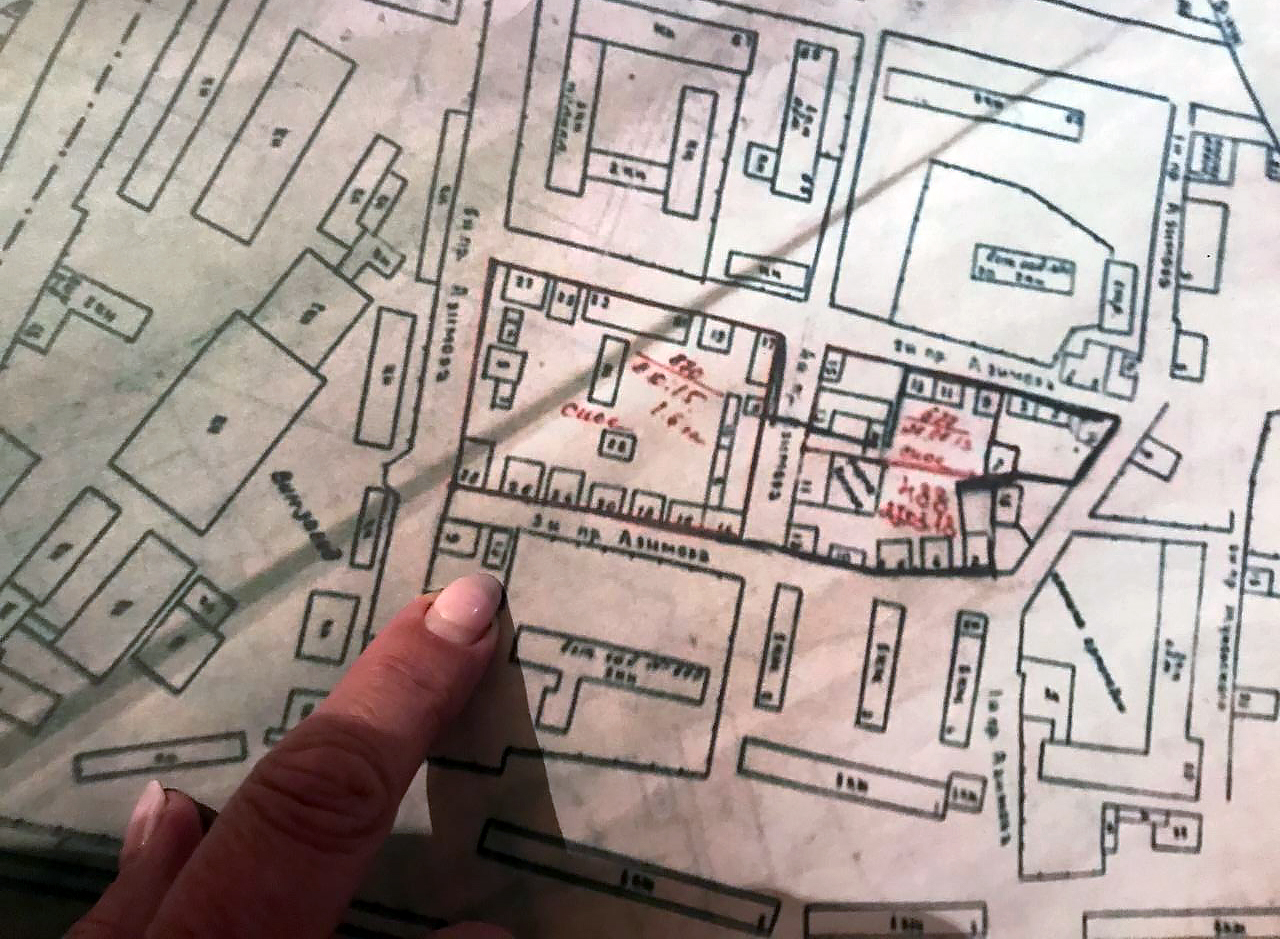 На первом фото видно, что что дом Ольга Абдуллаевой (указанный пальцем) не входит в план сноса. Это же подтверждается письмами ГУП ТошкентбошпланЛИТИ (проектный институт «Ташкент Генплан» - ред.) и Главного управления по строительству города Ташкента.