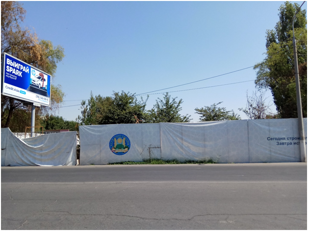 Так выглядит опустошенная зона бывшей махалли Кох-Ота, вдали – посольство Казахстана
