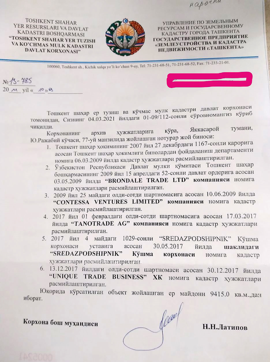 И даже наоборот: OOO «Unique Trade Business» подал иск против городского хокимията, оспаривая его решение об отмене строительства и передачи свободной земли в резервный фонд. Этот иск рассматривается в межрайонном административном суде Чиланзарского района судьей Б. Холмановым.