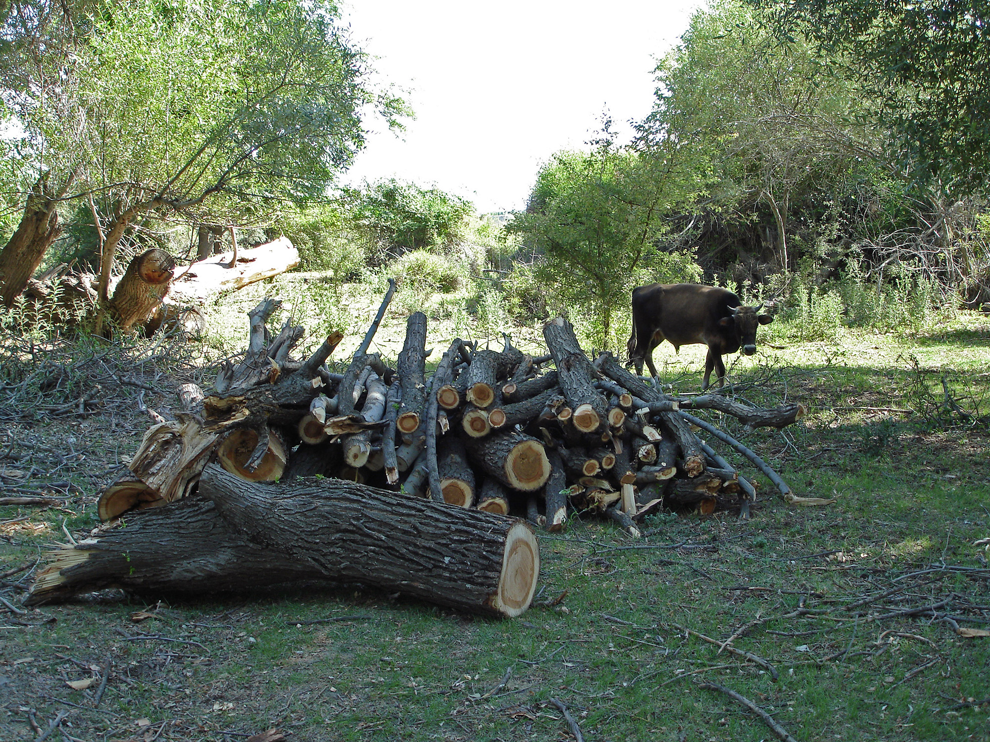 В другом месте мы обнаружили целый дровяной склад. Его хозяева, по-видимому, утомленные трудами по рубке леса, сладко дремали в тени ветвистых деревьев. Не довольствуясь одними только дровами, они загнали в заповедник еще и с десяток коров, разгуливавших возле подготовленных к вывозу поленниц. Мы не стали тревожить их мирный сон и удовлетворились тем, что лишь сфотографировали их, после чего тихо обошли и продолжили свой путь.