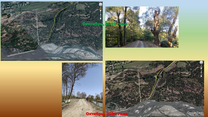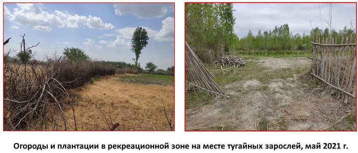 9 июня 2020 года издается приказ Государственного комитета лесного хозяйства №100, по которому часть территории нацпарка подлежит расчистке от лесных насаждений под будущие лимонарии, теплицы и пруды. Буквально через два дня, а именно 11 июня того же года издается распоряжение директора Зарафшанского национального природного парка О. Хамракулова о вырубке 2275 тополей на 4,5 гектара 1-го участка, который относится к Джамбайскому району, где, уточняю, по постановлению Кабинета Министров не были отведены зоны для сельхоздеятельности. Кроме этого самоволия, по факту были вырублены не 4,5 гектара, а 11 (!) тополево-тугайного массива, что можно хорошо увидеть на спутниковых снимках. Отмечу, что по словам научных сотрудников, в данном массиве, который в 2009 году был присоединен к заповеднику, бухарские олени и зарафшанский фазан выводили свое потомство.