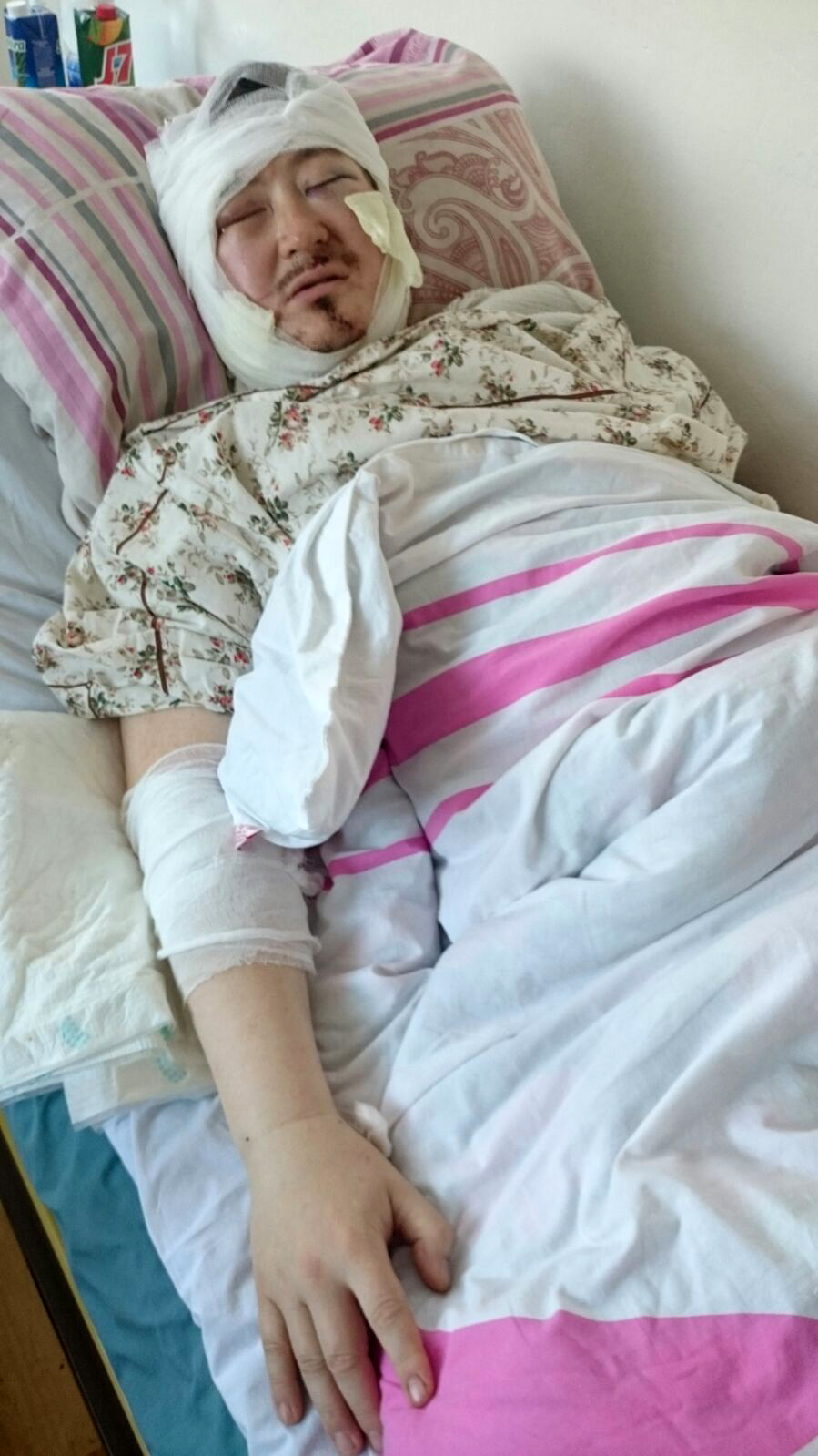 Не подозревая ничего дурного, я сел в BMV. Но завести машину не успел - в окно со стороны водителя постучался другой молодой парень в медицинской маске и попросил прикуриватель. В это момент сидящий рядом со мной молодой человек сразу начал наносить удары электрошоком. Второй снаружи придерживал дверь. Затем сидящий рядом вытащил охотничий нож и стал им наносить мне удары, пытаясь попасть в область шеи. При этом он кричал слово «муртад» (вышедший из ислама). Так было нанесено несколько глубоких колото-режущих ран. Одновременно они пытались меня затолкнуть внутрь машины. Но мне удалось вырваться, [выскочить из машины] и отбежать от BMV метров 20-30, ближе к базару, где меня окружили люди. И там я потерял сознание из-за сильной потери крови.