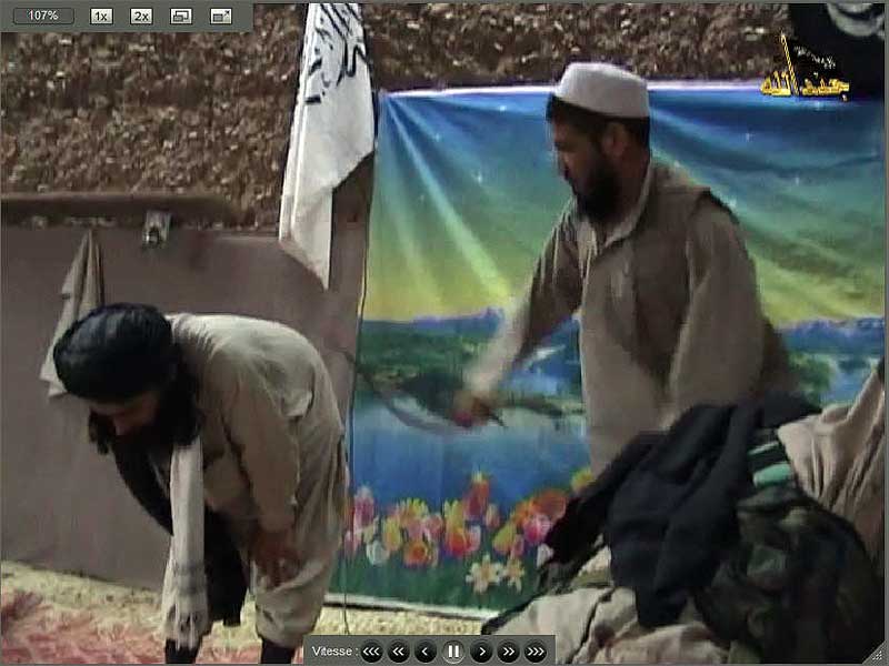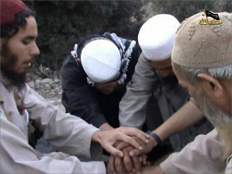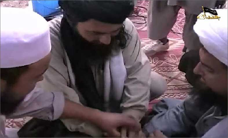 Процедура «байата» Усмону Одилу. Люди в кадре говорят следующие слова: «Я буду выполнять всё, что вы прикажете в пределах праведности, на пути Аллаха. Я клянусь вести джихад до тех пор, пока не достигну шахидства на пути Аллаха. Я дам вам клятву, что в тот же день, когда вы разрешите мне, я совершу мероприятие по самопожертвованию! Как только разрешите мне, я совершу акт самопожертвования! Я дам клятву, что как только дадите разрешение, в тот же миг я буду совершать мероприятие по самопожертвованию!»