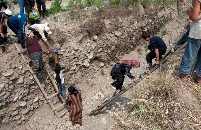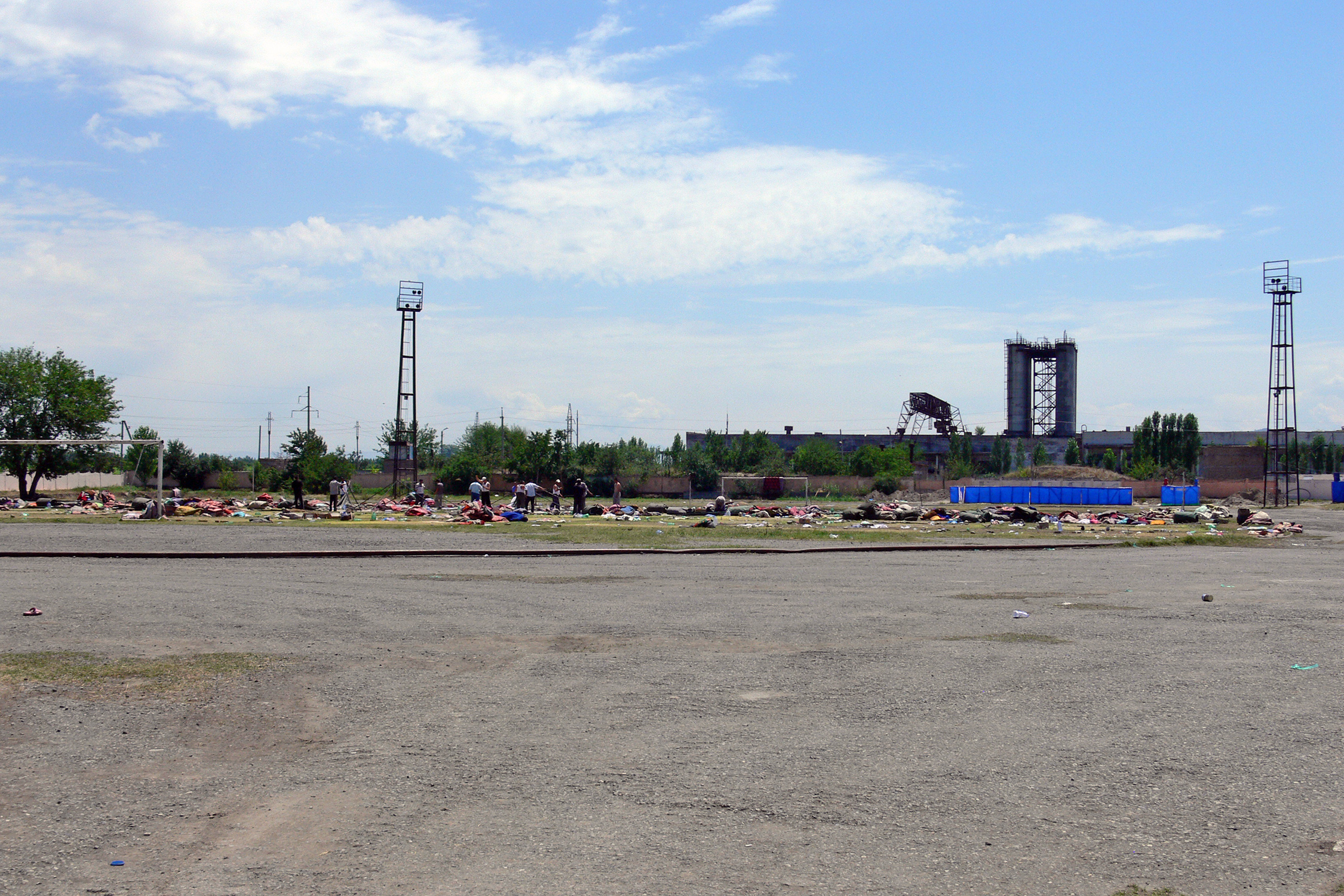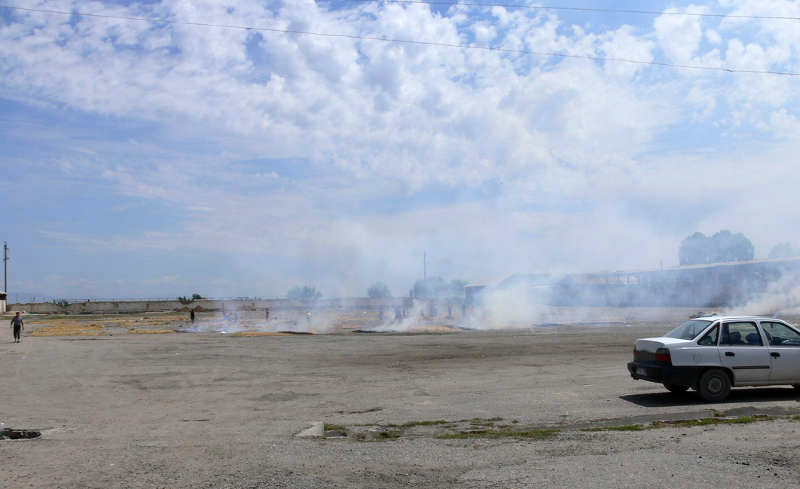 Очистка территории от следов пребывания беженцев в селении Ёркишлак под Андижаном, Узбекистан. Фото автора