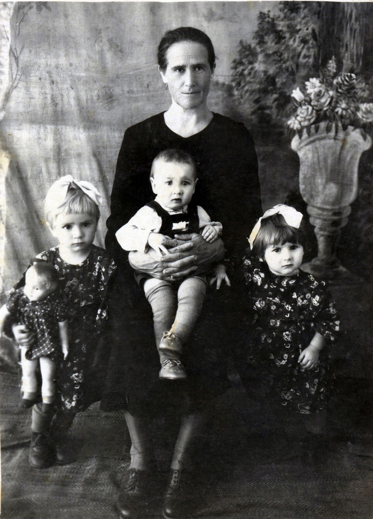 Екатерина Гросс (жена Якова Гросса) с внуками, 1956 год