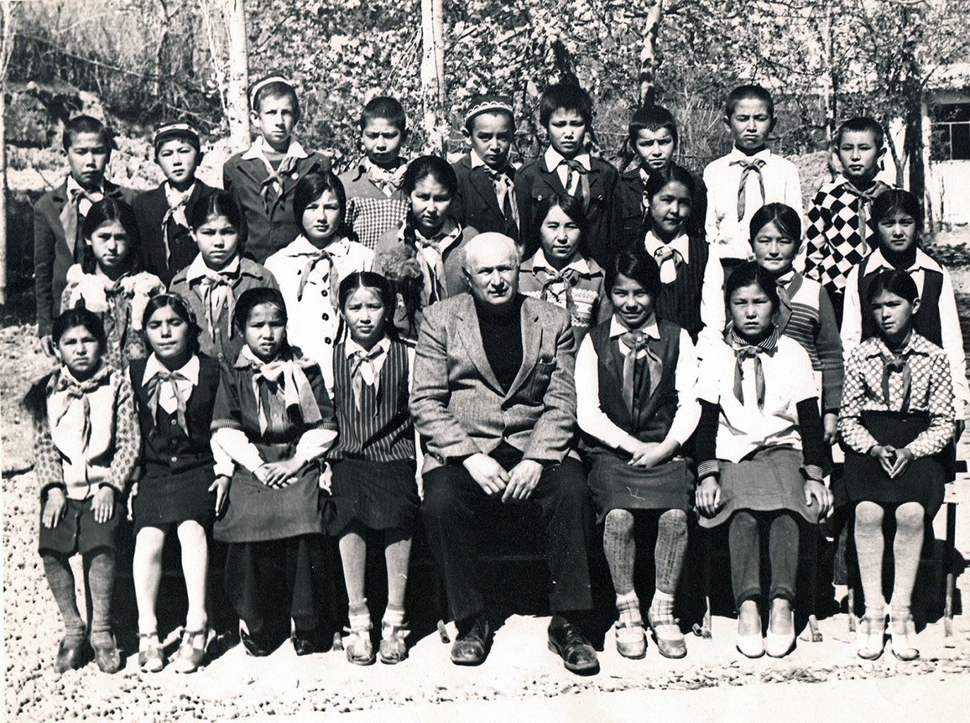 Евгений Васильевич Веккерле, преподаватель немецкого языка в узбекской школе, со своими учениками, 1960-70-е годы