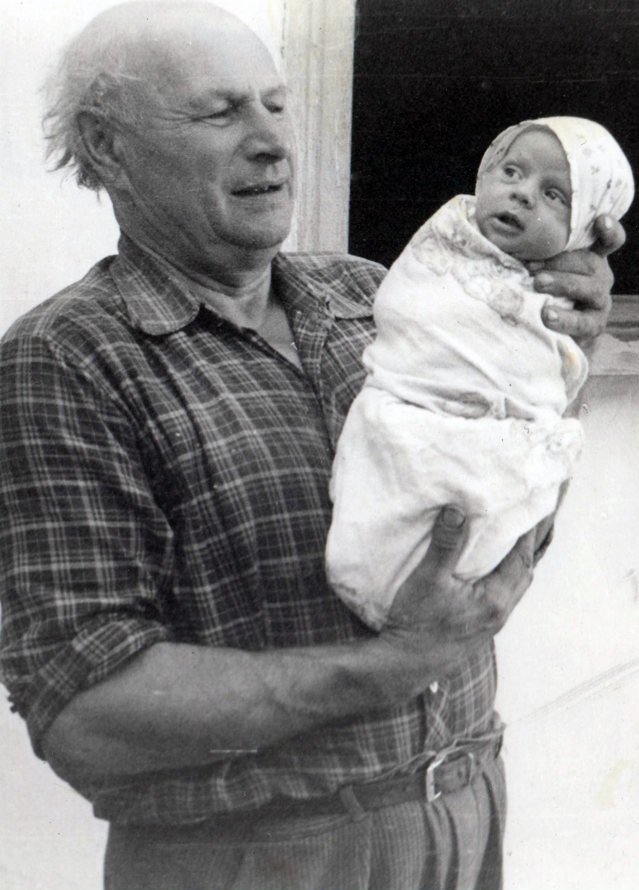 Евгений Васильевич Веккерле с внуком. Ангрен, 1982 год