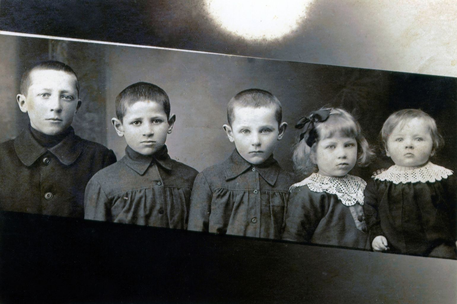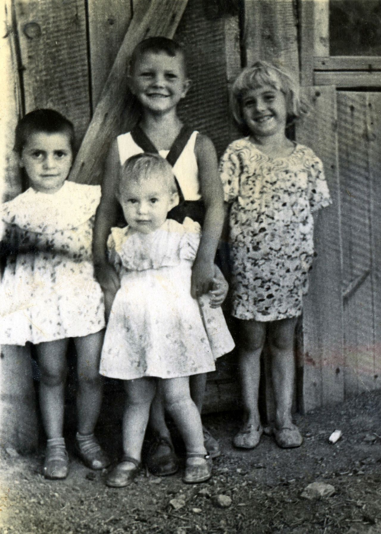 Дети семьи Веккерле. Внизу - Нина, за ней два ее брата, справа - соседская девочка. Село Высокое, южный Казахстан, конец 1950-х годов