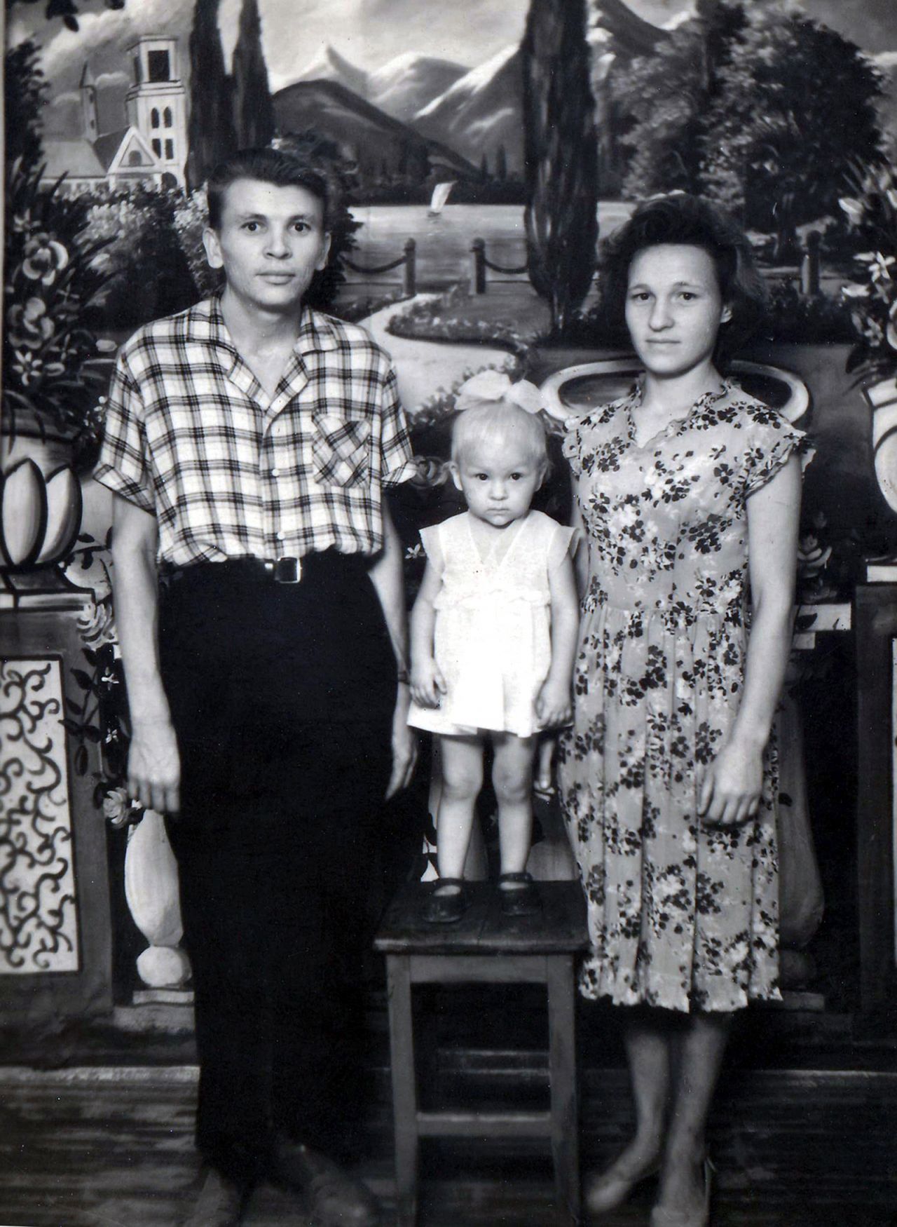 Ира Гейнце с отцом, Виктором Егоровичем Гейнце и матерью, Эммой Гейнце (Кайзер), начало 1960-х годов