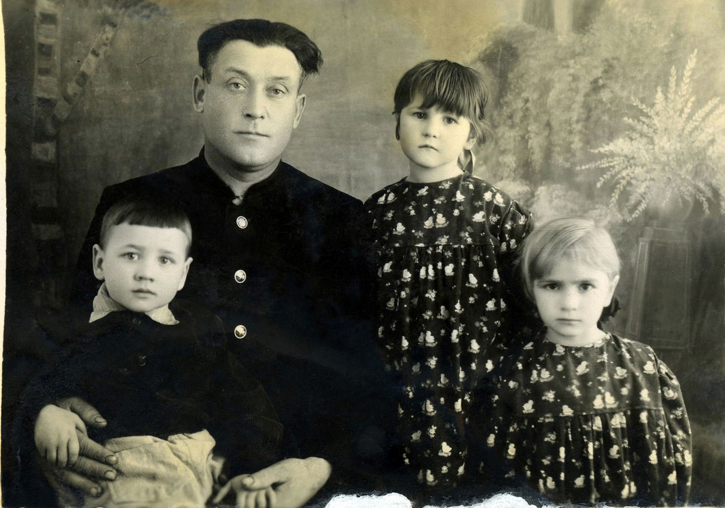 Яков Яковлевич Гросс (брат Петра Гросса) с детьми, 1960 год