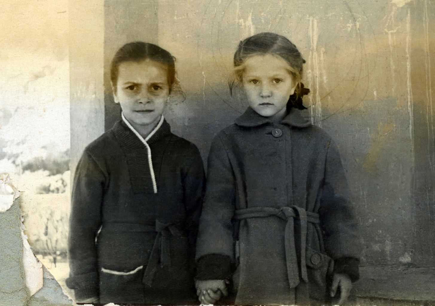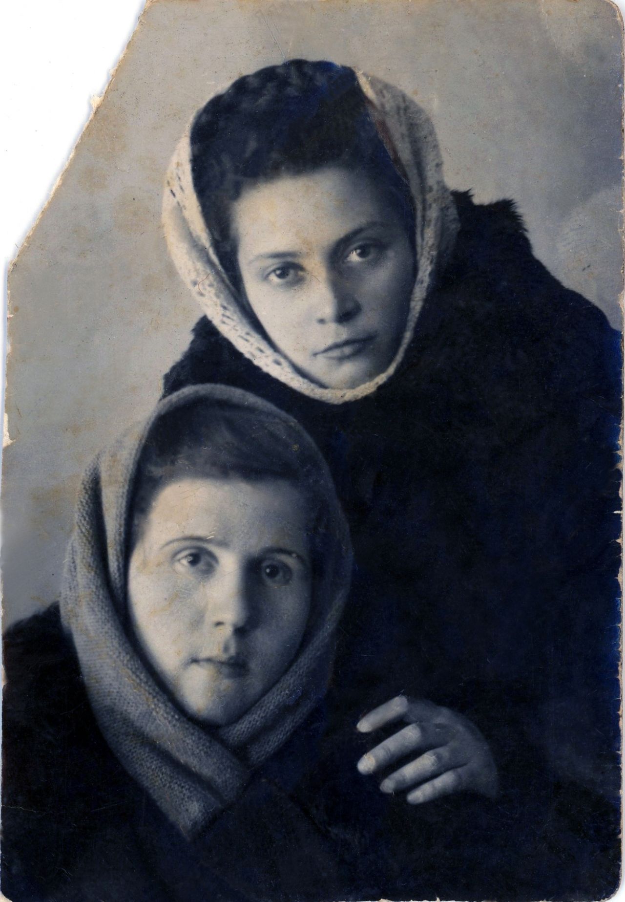 Галина Гросс Галина Гросс (слева), жена Петра Гросса, Янгиабад, барак, 1951 год