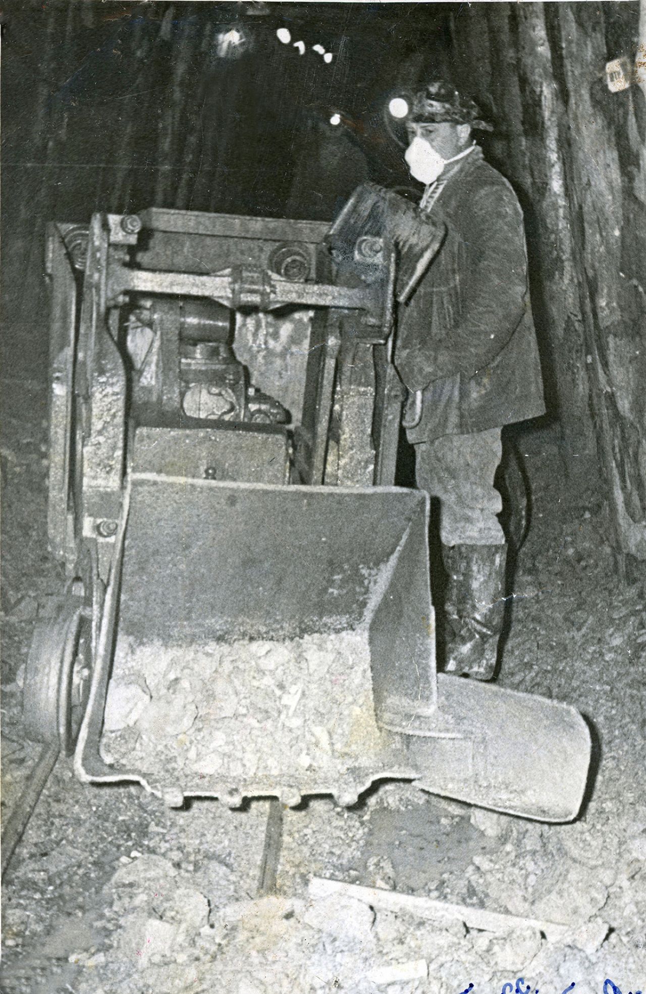Пётр Гросс - проходчик в урановой шахте. Янгиабад, 1965 год