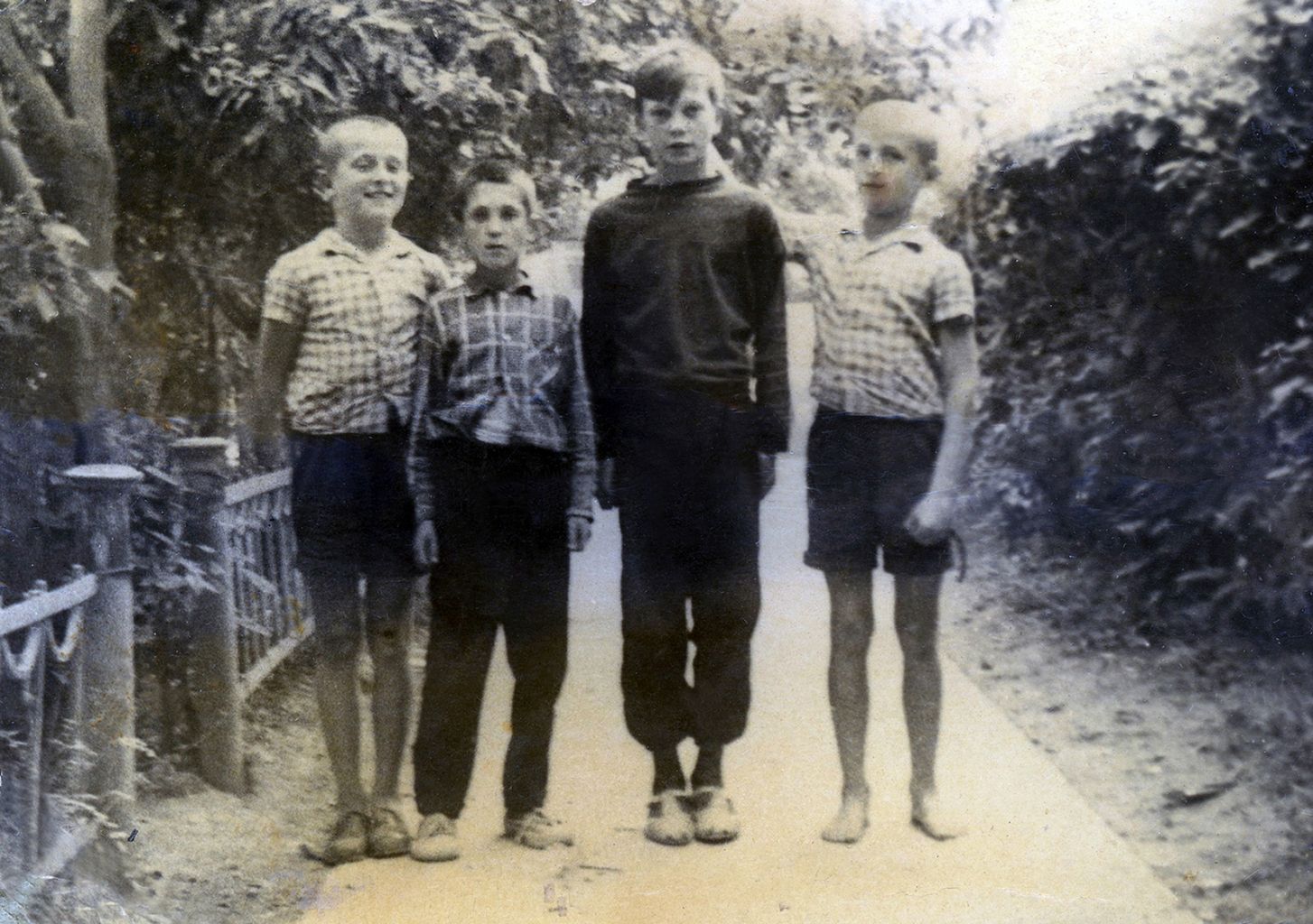 Ирина Гросс (слева) с братом и соседскими детьми. Янгиабад, конец 1950-х годов
