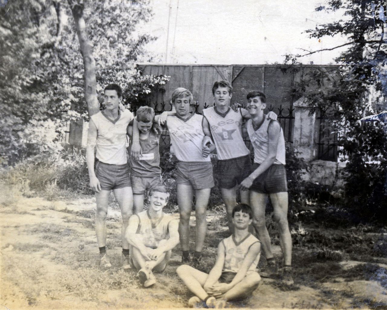 Валерий Гросс (внизу справа), занятия спортом. Янгиабад, середина 1960-х годов