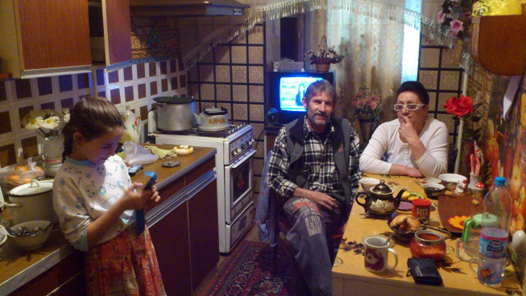 Ирина Петровна Паули со вторым мужем и внучкой в своей квартире. Ангрен, 2014