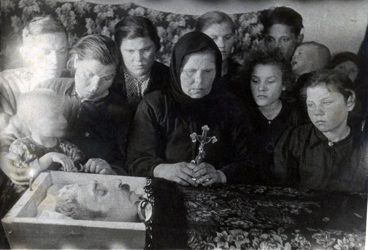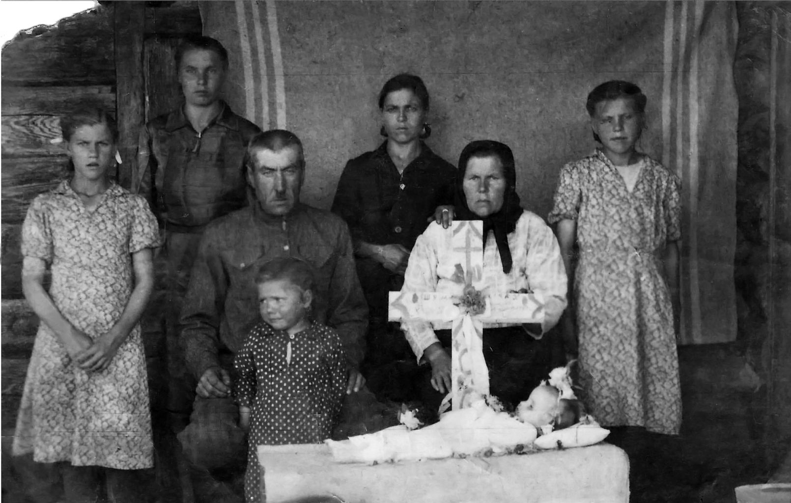 Семья Шумахер. Похороны умершей дочки. Деревня Кислуха в Барнаульском районе Алтайского края, 1949 год