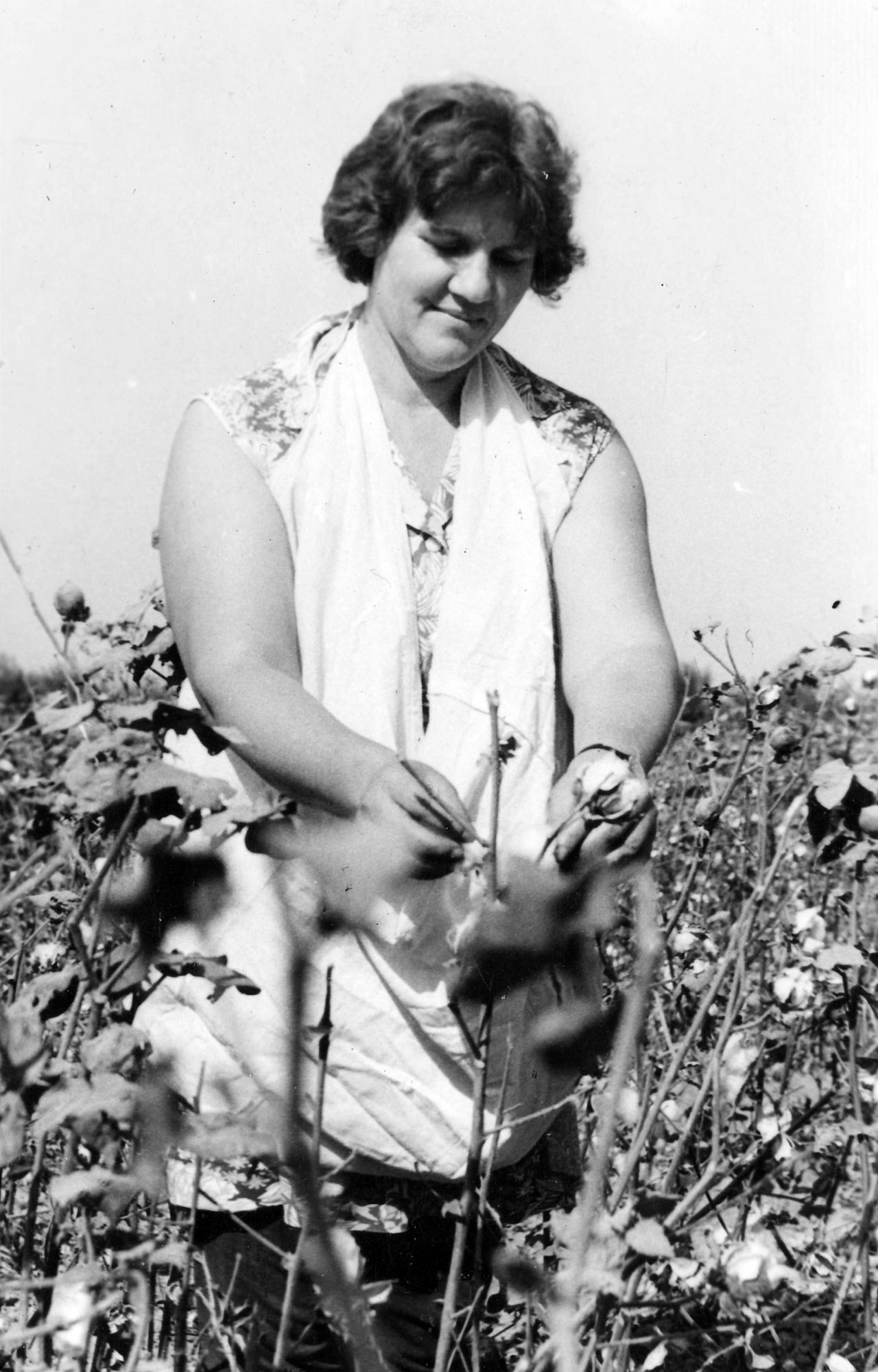 Маргарита Климентьевна Шумахер собирает хлопок, 1960-70-е годы