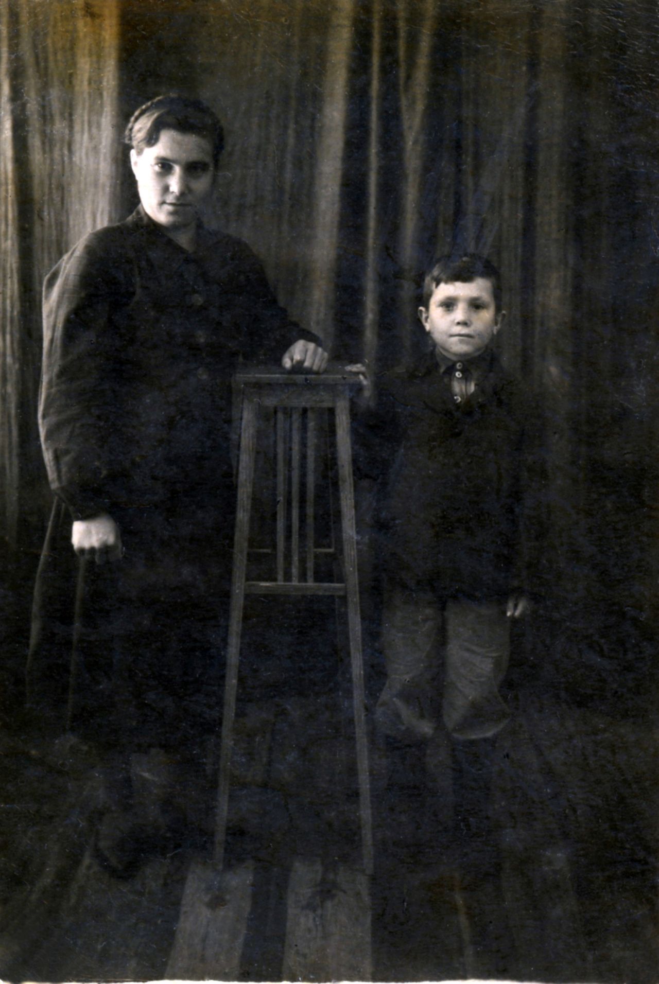 Виктор Егорович Гейнце (будущий отец Ирины Гейнце) и его мать - Мария Егоровна Гейнце, 1940-е годы