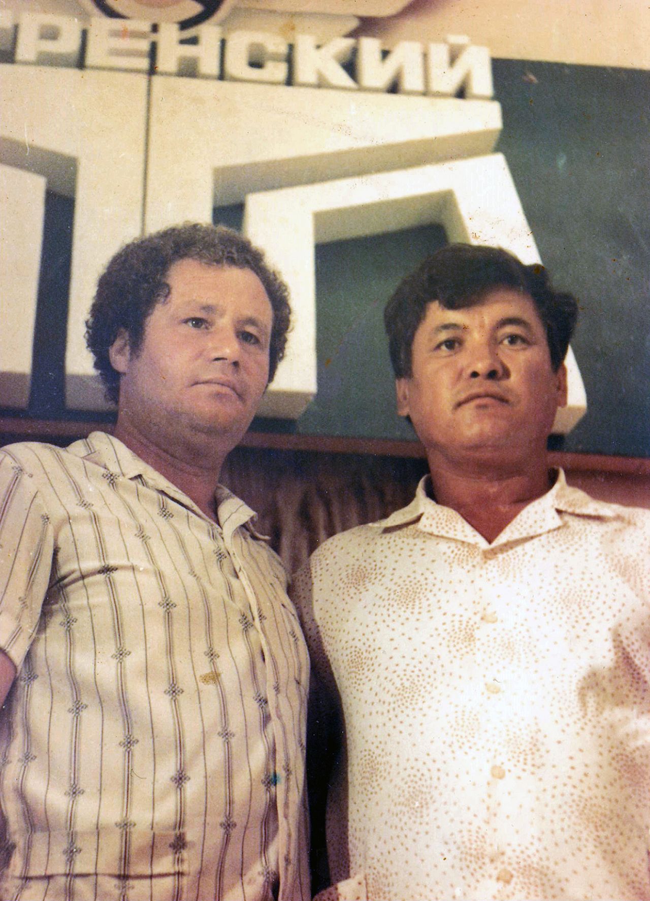 Евгений Васильевич Веккерле с зятем Махмудом. Ангрен, 1983 год