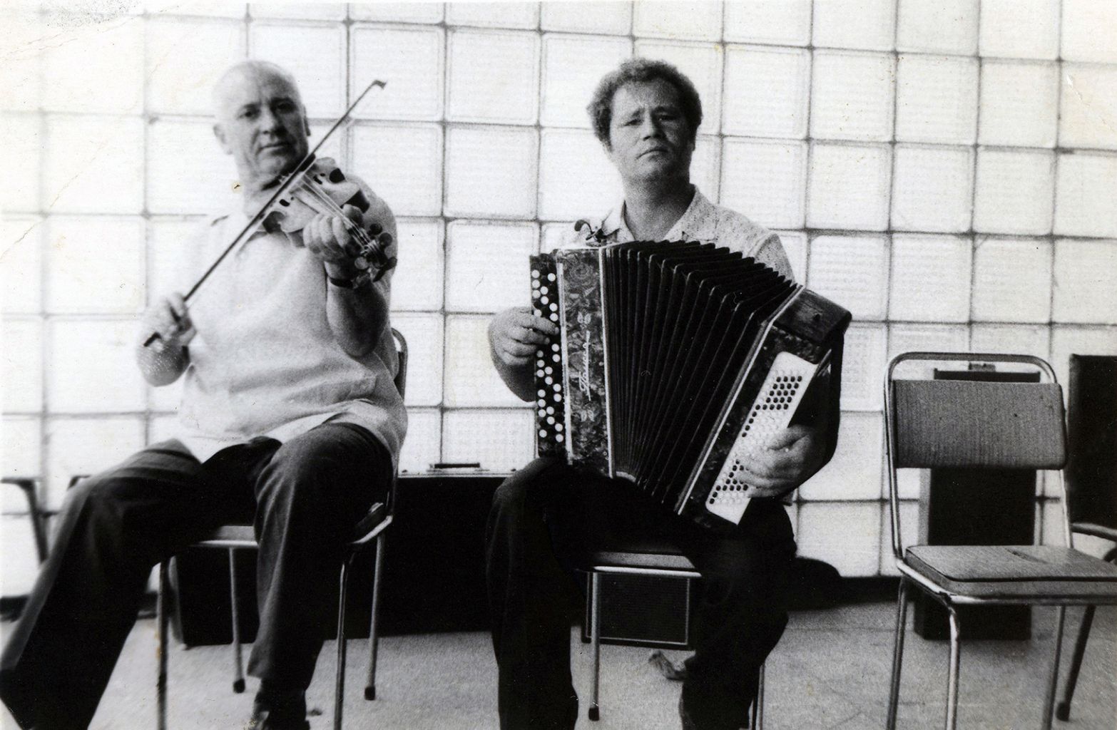 Эдуард Михайлович Рихмаер и Эмиль Николаевич Вимлер играют на свадьбе. Ангрен, 1980-е