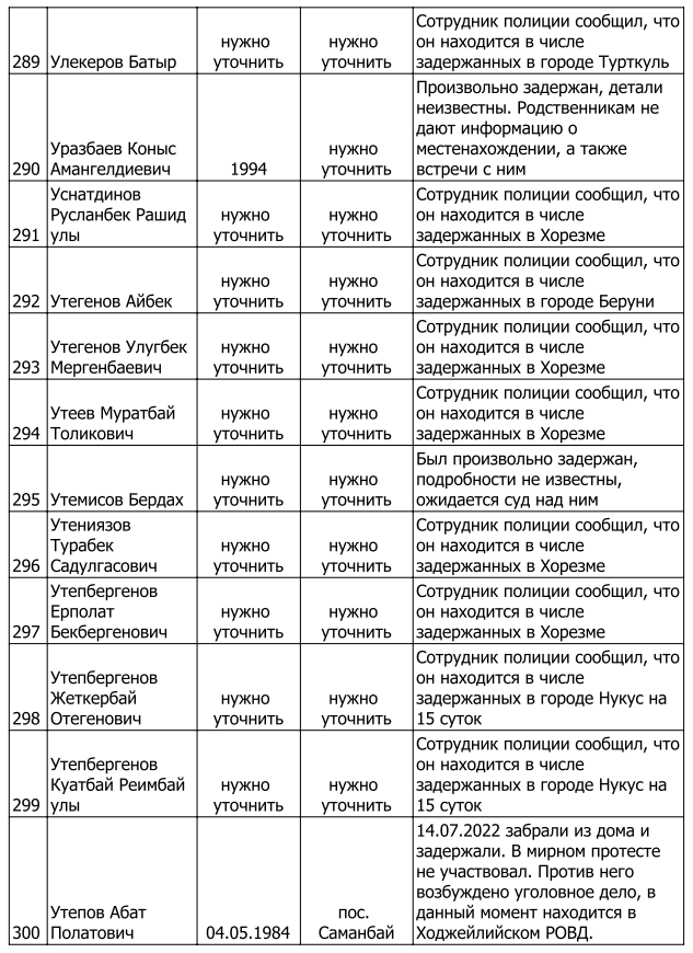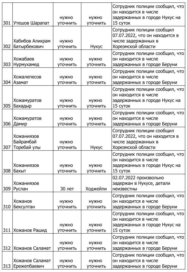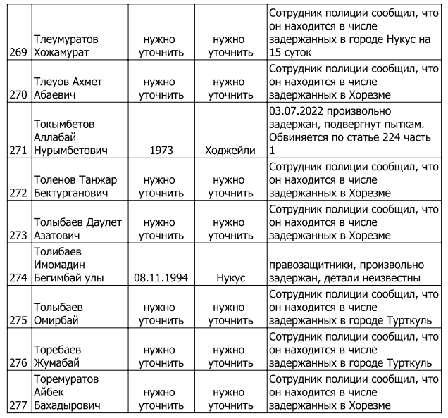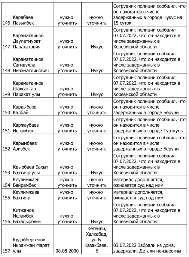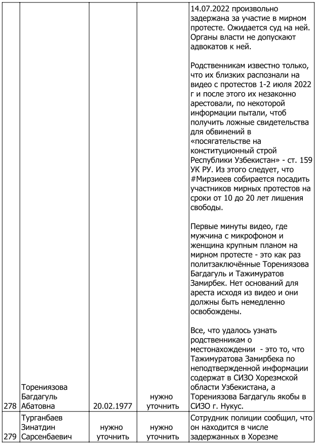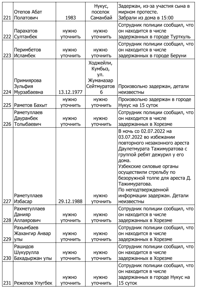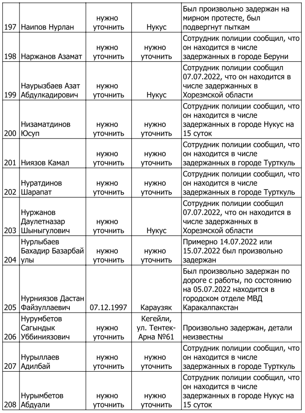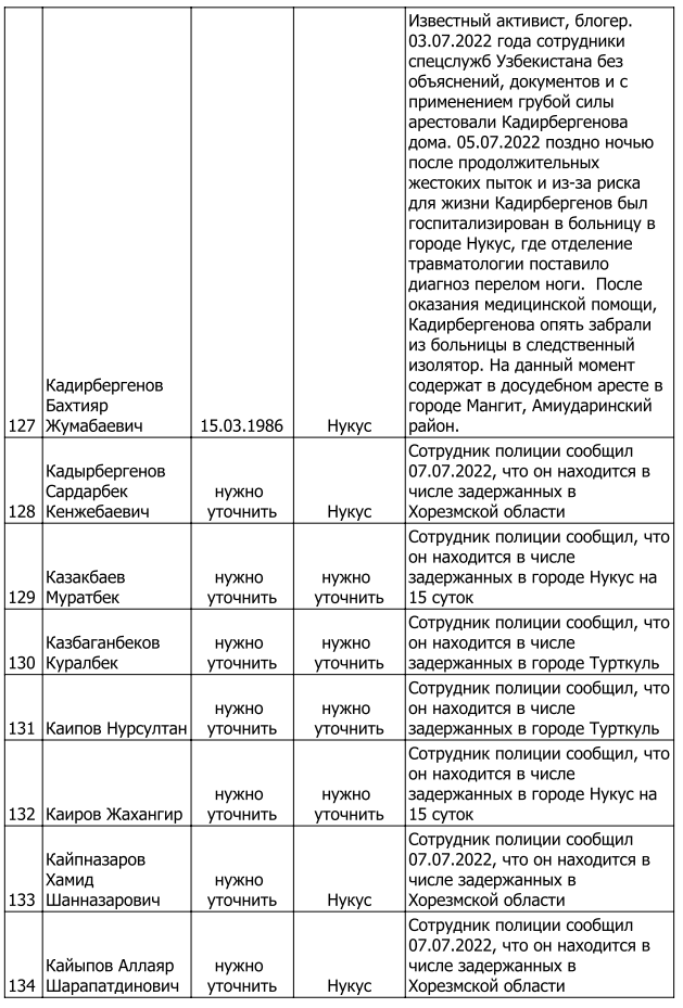 Список произвольно задержанных участников мирных протестов и мирных жителей по состоянию на 5 августа 2022 г.