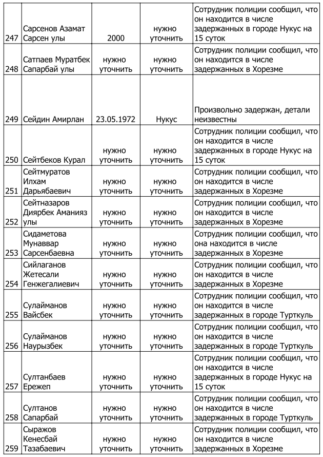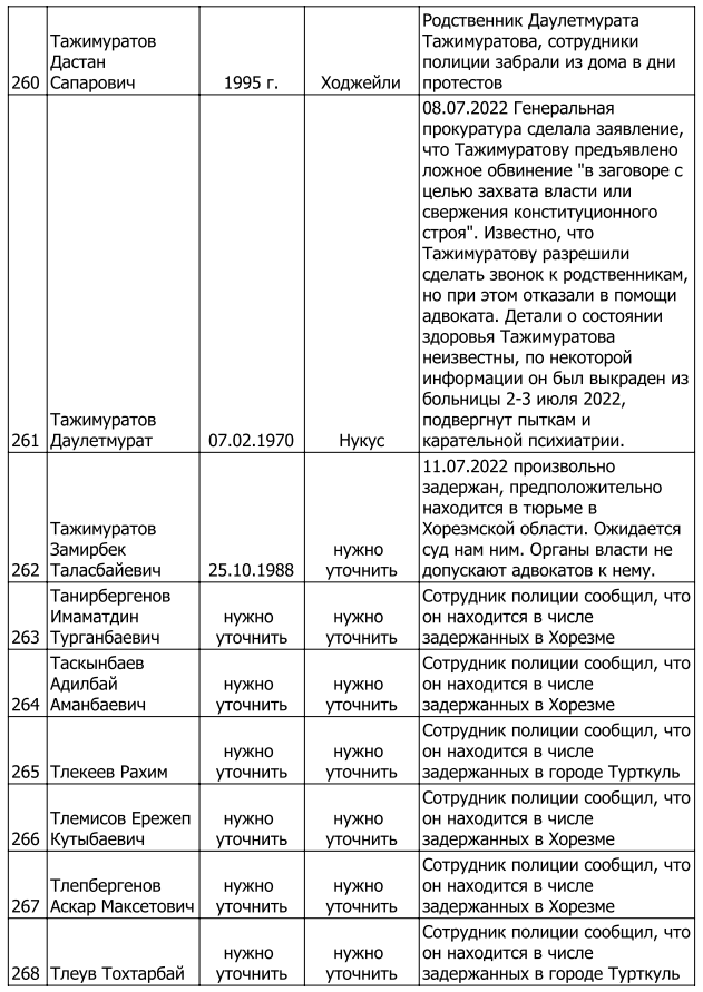 Список составлен коалицией правозащитных организаций, в которую входят фонд «Открытый Диалог», казахстанский правозащитный фонд «Qaharman», казахстанские правозащитные движения «Elimay», «Femina Virtute», «Article 14», «405», «Veritas», правозащитная группа «Bostandyq Kz». Источниками информации послужили свидетельские показания и интервью с жертвами преследований и их родственниками.