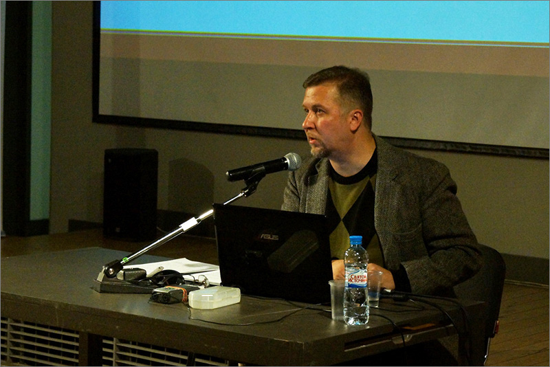 Алексей Улько на лекции в Государственном центре современного искусства (ГЦСИ), Москва