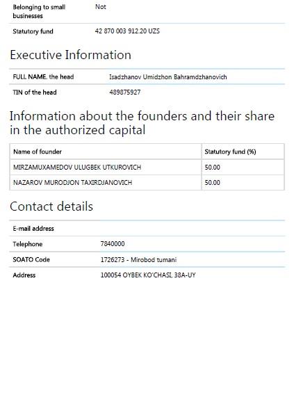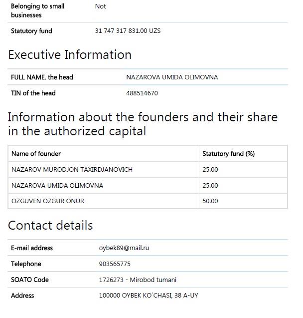 Кстати, говоря о Murad Buildings, следует иметь в виду, что имеется две компании под таким названием, одна – частное предприятие Murad Buildings, зарегистрированное 7/7/2017 г. (учредитель и глава фирмы – Мурад Назаров) и ООО Murad Buildings, зарегистрированная 08/16/2017 (учредители – Мурад Назаров с долей 50%, и Улугбек Уткурович Мирзамухамедов, с такой же долей). Так что говоря о Murad Buildings, следует уточнять, о какой из двух идет речь. Хотя брэнд, конечно, один.