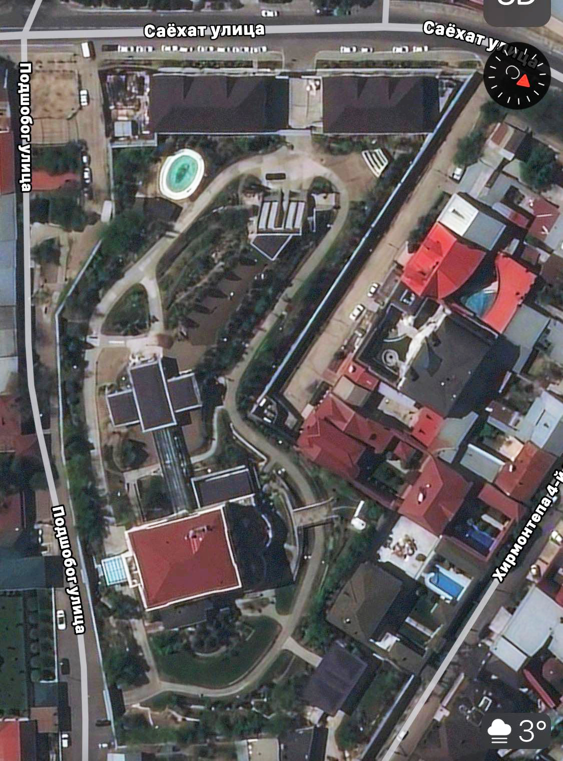 (На фото дом якобы построенный для Ойбека Турсунова и Саиды Мирзиёевой. Для постройки этого дворца выкупили сорок пять домов на указанной территории.)