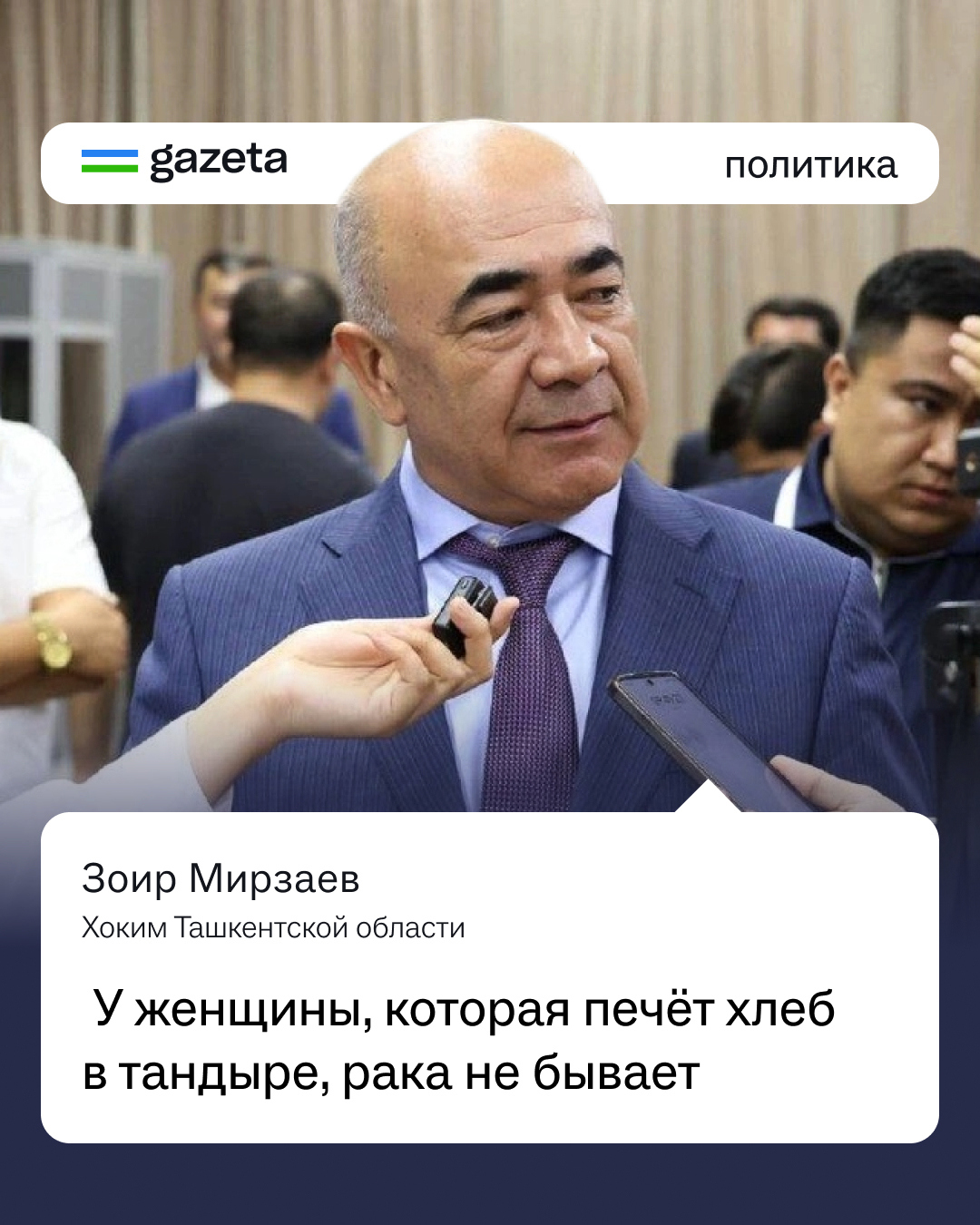 Стоявшие рядом чиновники апплодировали гению и предлагали массово сгонять на лечение онкологии к тандырным пекарям. Лепешки и самса - это лекарство от рака. Министр здравоохранения рыдал от того, что не он первым додумался до такой простой истины. Нобелевка по медицине явно светит теперь Зойиру Мирзаеву.