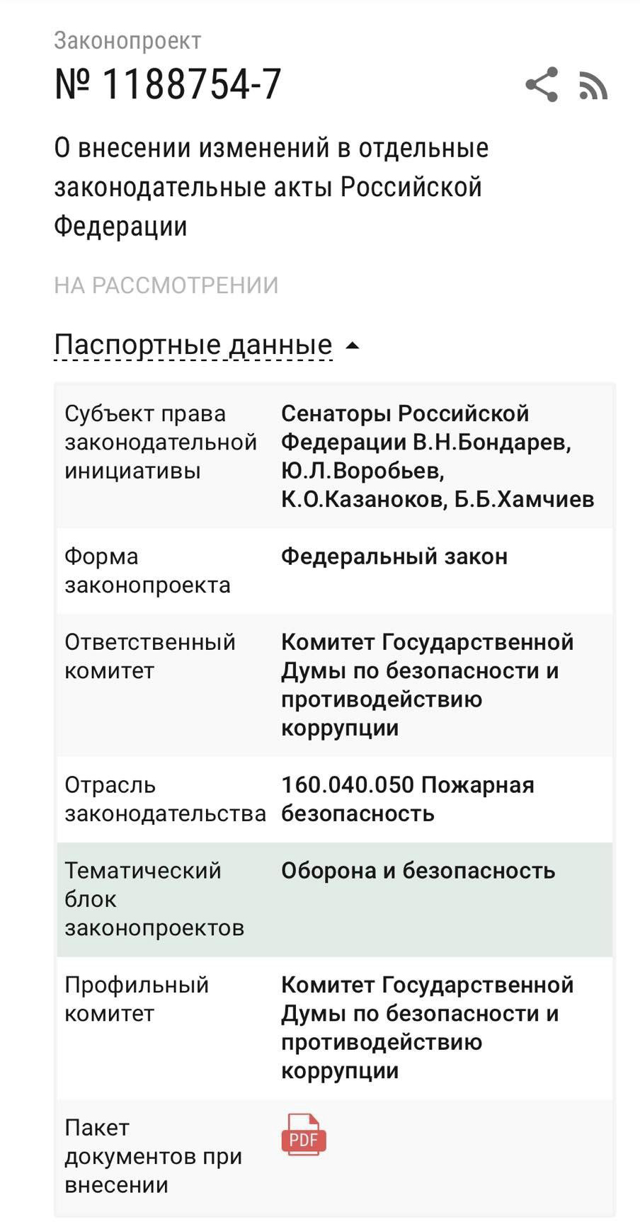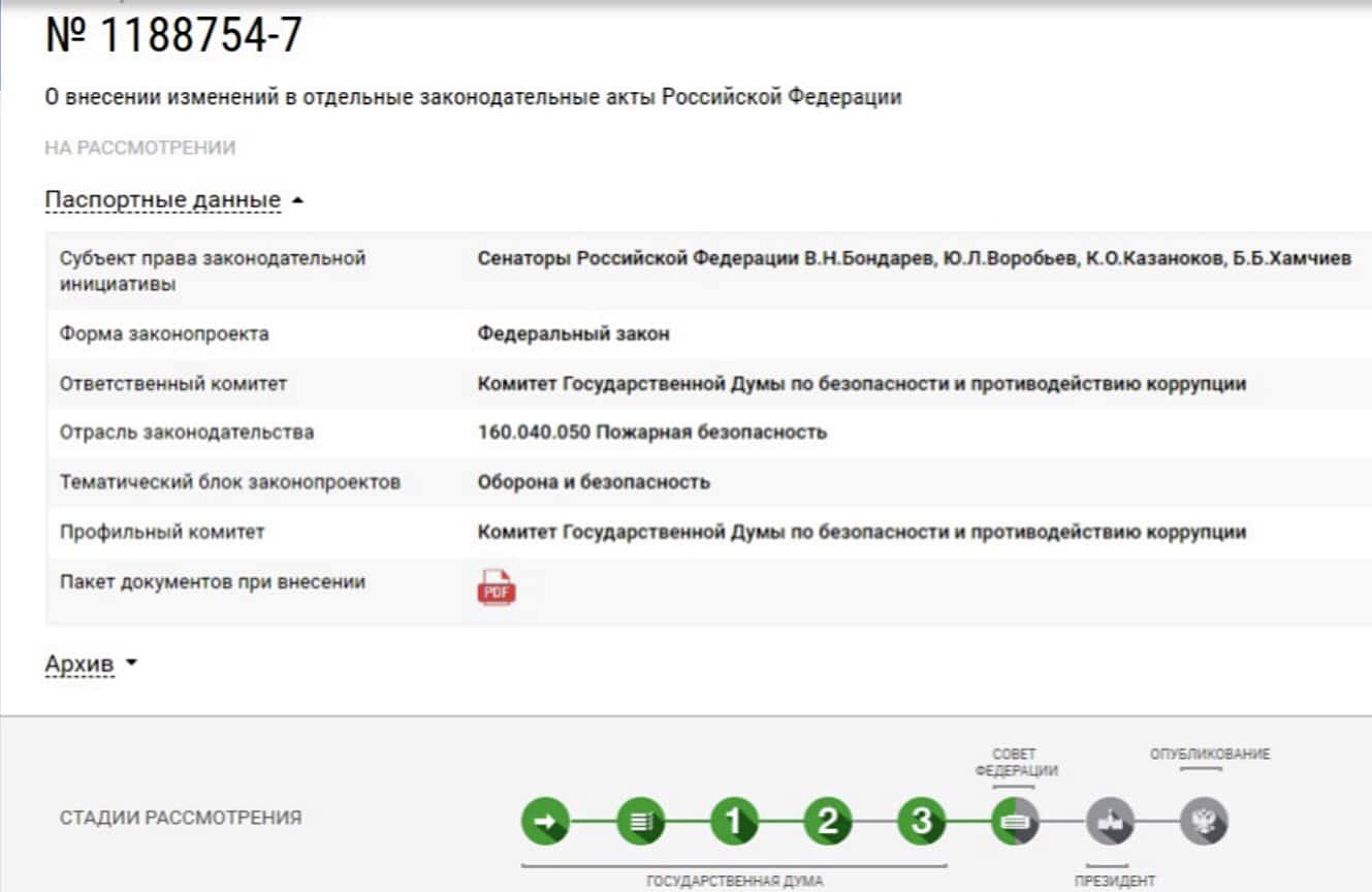 Гиперсылка введёт на законопроект «О пожарной безопасности» в официальной базе данных.
