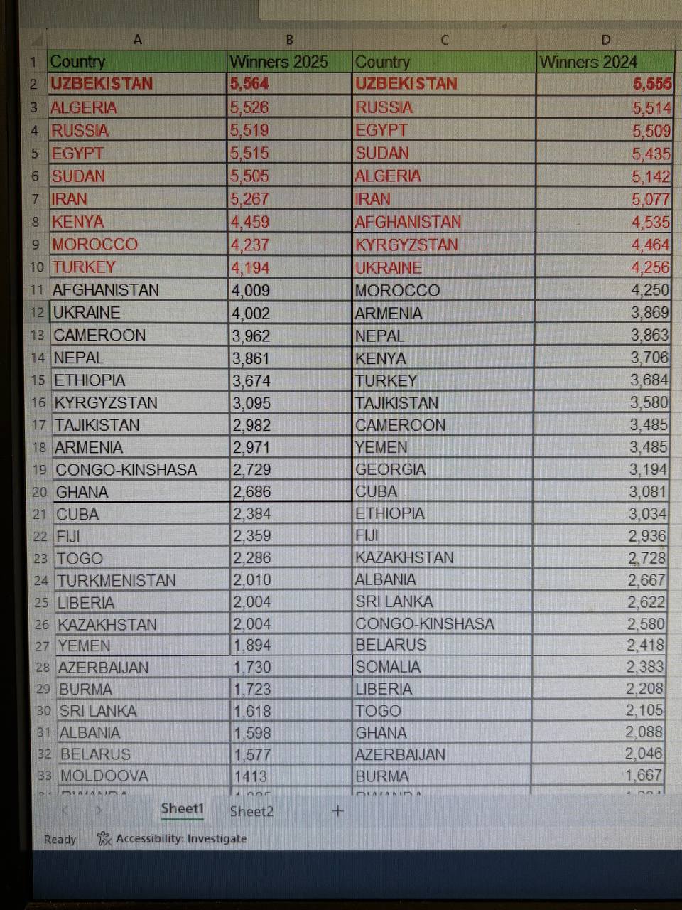 4 мая были объявлены результаты розыгрыша грин-карт для постоянного проживания в США на 2025 год (DV-2025).
