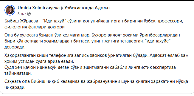 Пост из группы в Фейсбуке «Узбекистонда Адолат»