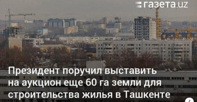 Кажется, глава государства забыл свои собственные указания насчет моратория на строительство внутри Ташкента. Сейчас хоким (глава администрации – ред.) должен найти где-то 60 га земли и выставить на аукцион. Для такого действа земля вообще-то должна быть свободна от зарегистрированных в кадастре жилых и нежилых помещений на праве частной собственности. Ну, посмотрим, как будут изворачиваться.