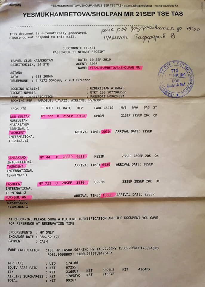 Путешествие по Узбекистану завершилось в Самарканде, откуда я должна была вылететь в Ташкент 28 сентября рейсом 044 в 04.35 утра.