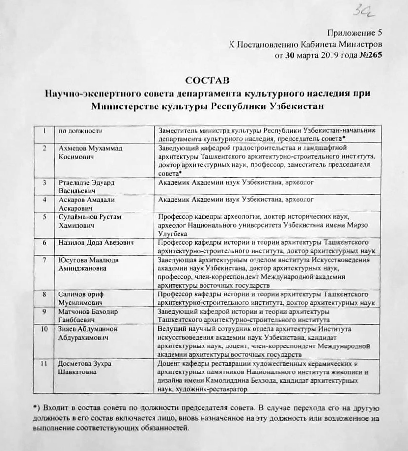 Понятно, что среди внутренних документов Департамента культурного наследия, которые кто-то из его сотрудников, очевидно, передал (продал) представителям застройщиков, есть и рабочие, т. н. промежуточные экземпляры. Министерство культуры уже не раз объявляло, что прежние протоколы (с нарушениями) аннулированы, а действительно лишь заключение ученого совета от 22 сентября за № 26, подписанное министром культуры Озодбеком Назарбековым 5 октября.