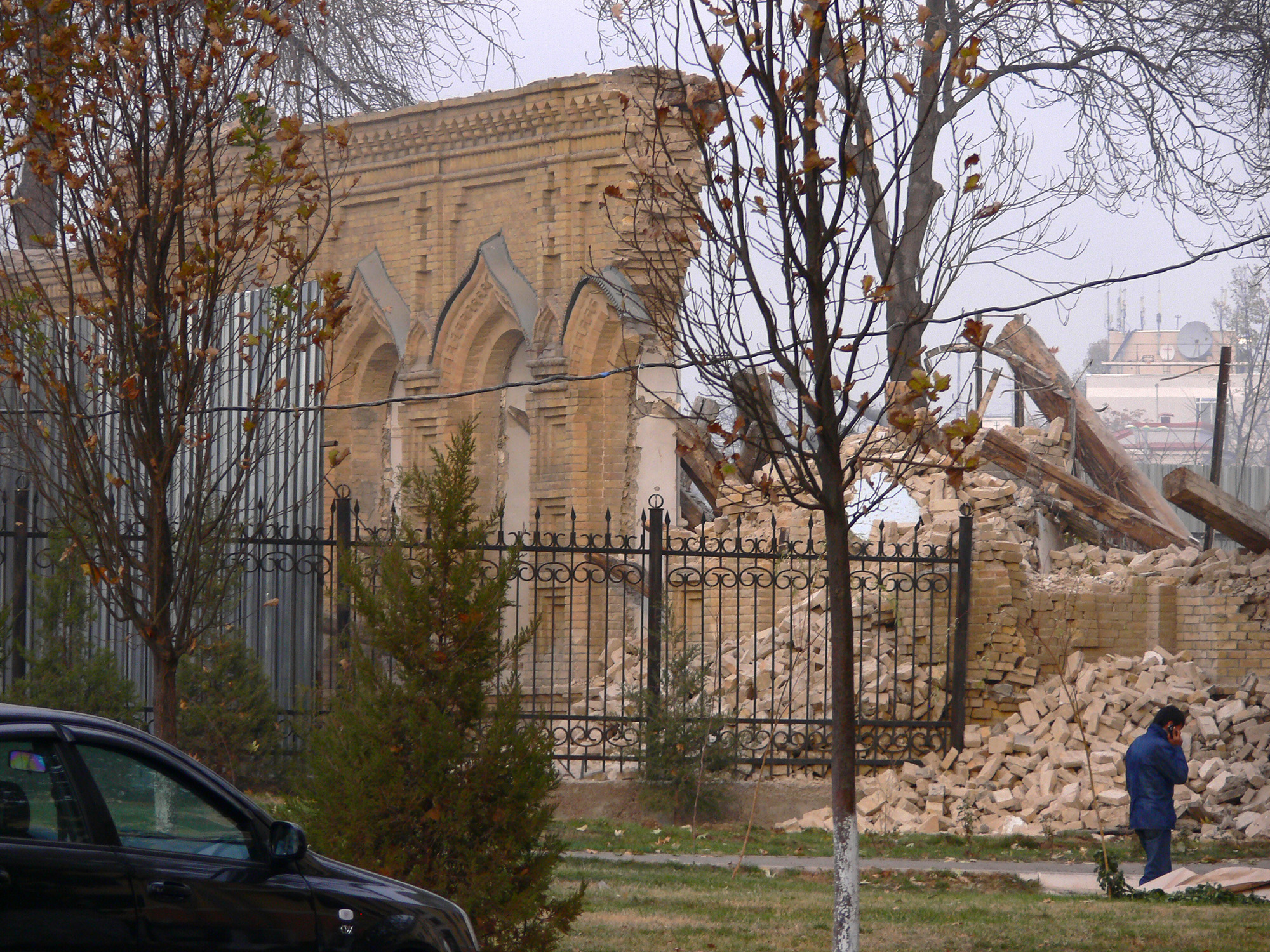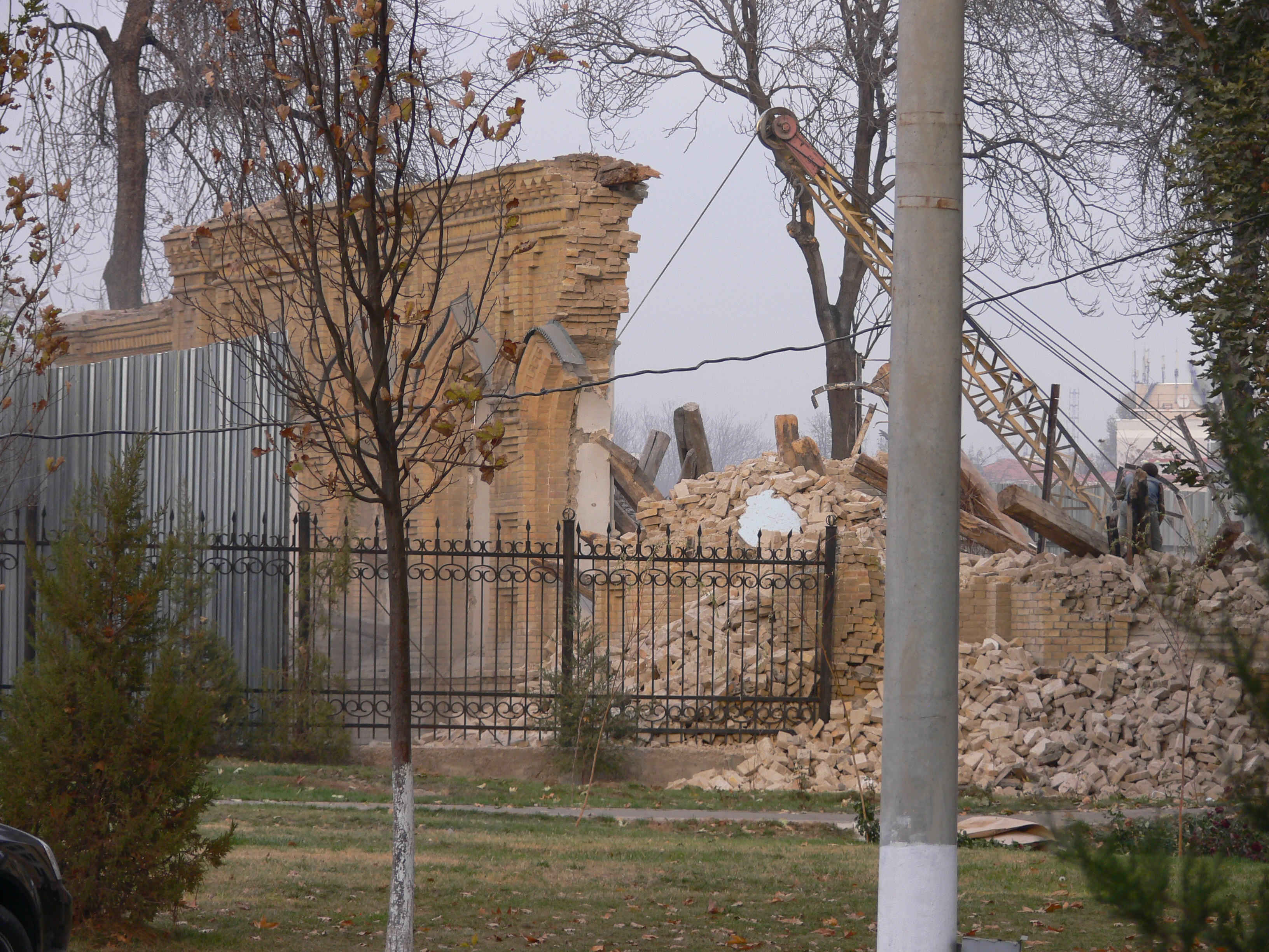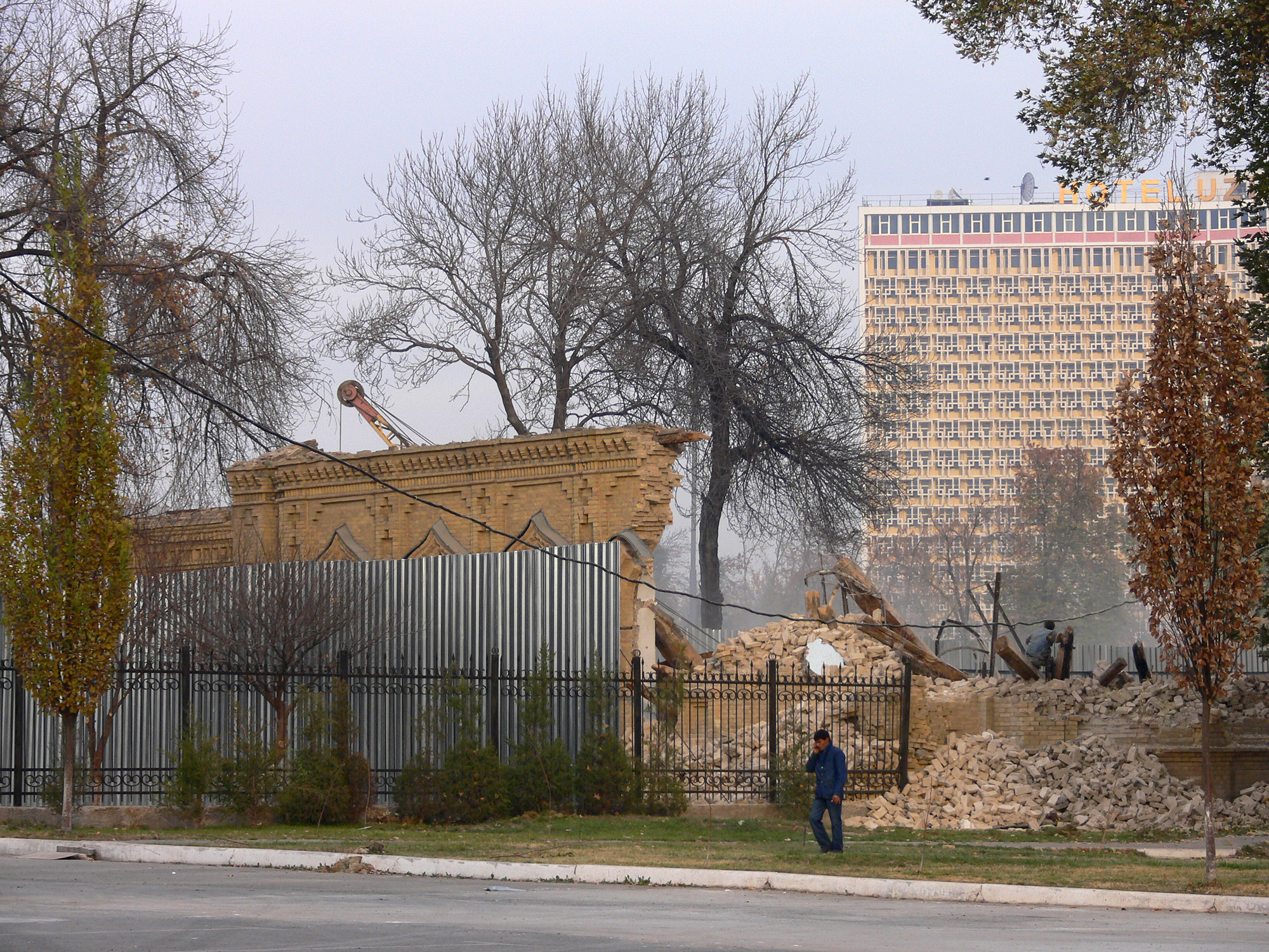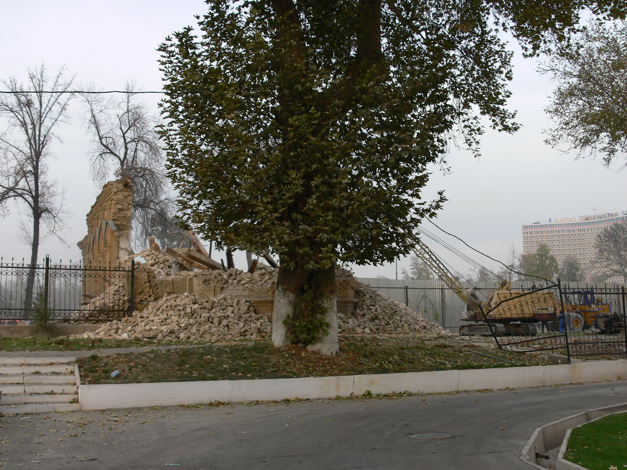 В общем, смотрите фотографии. Вот так в Ташкенте 18-21 ноября 2009 года уничтожали «охраняемый государством» уникальный архитектурный объект.