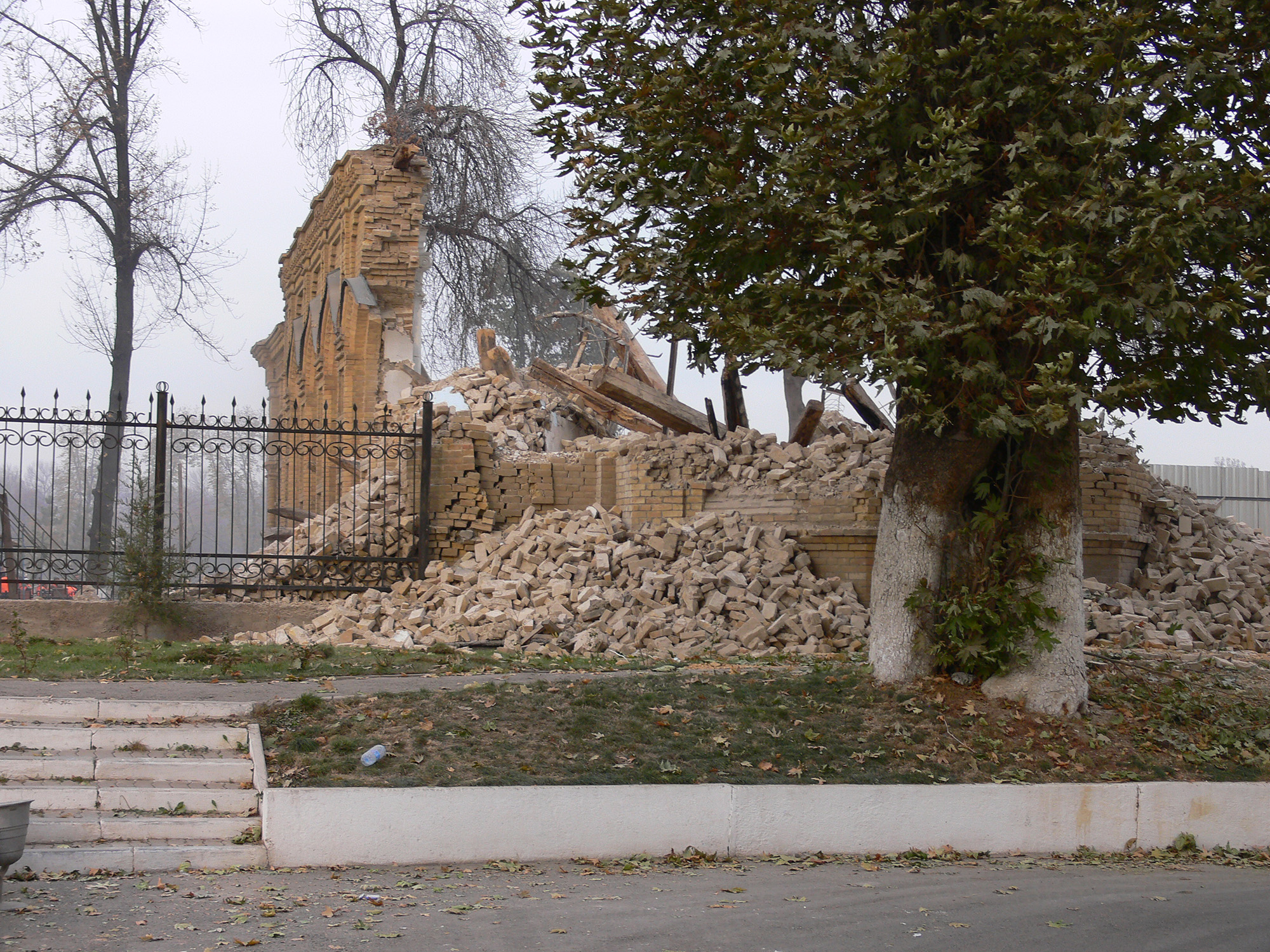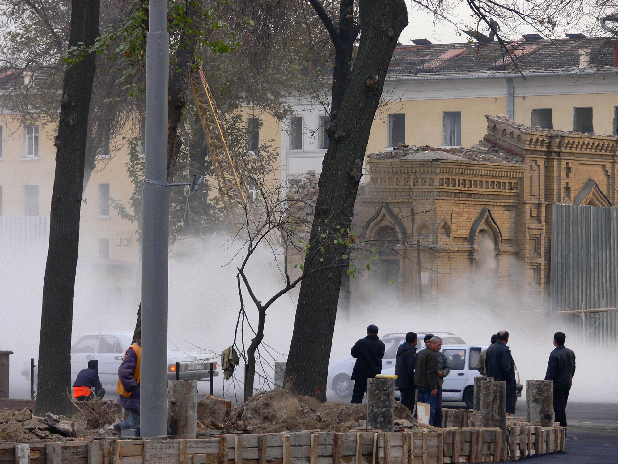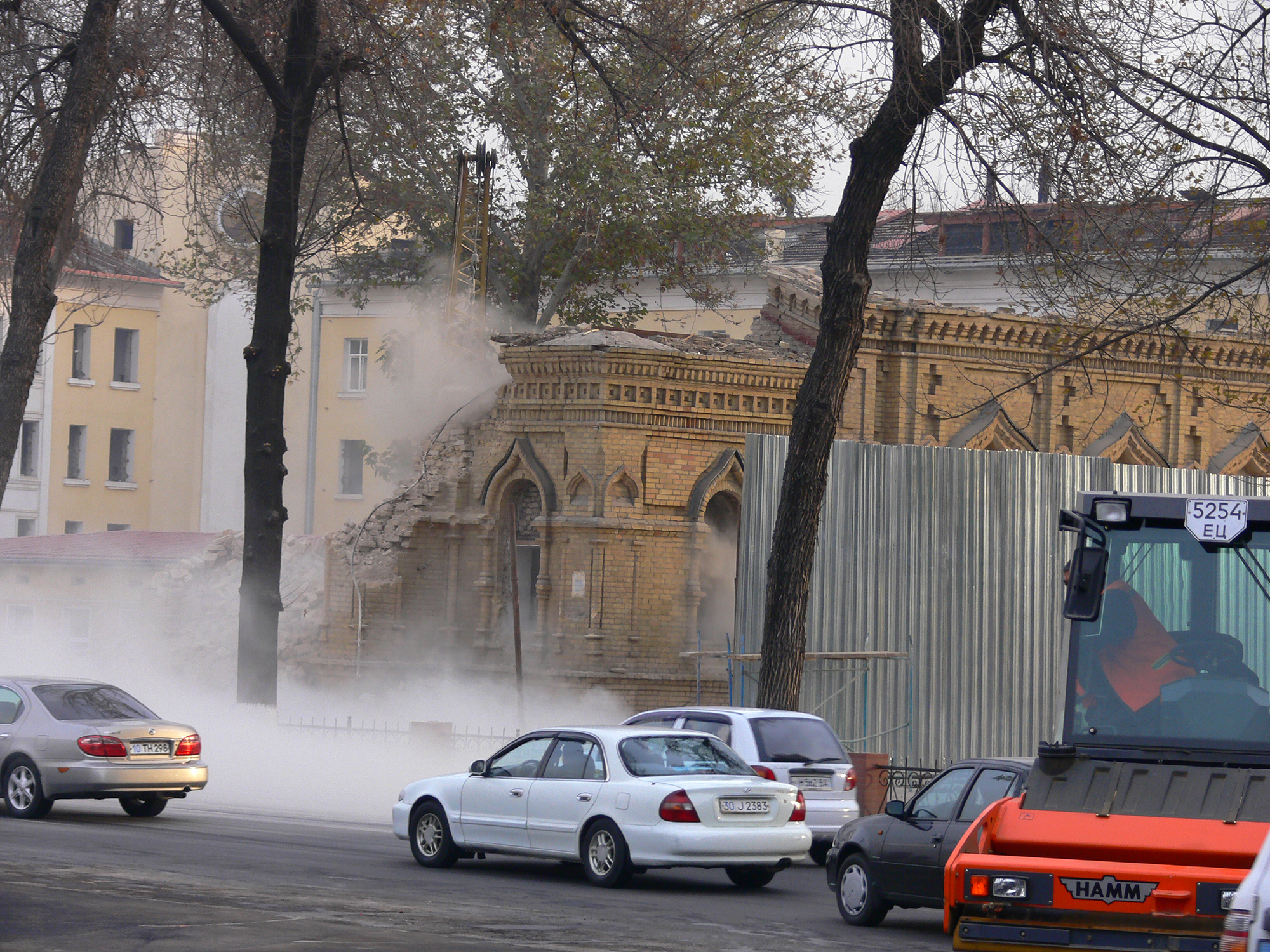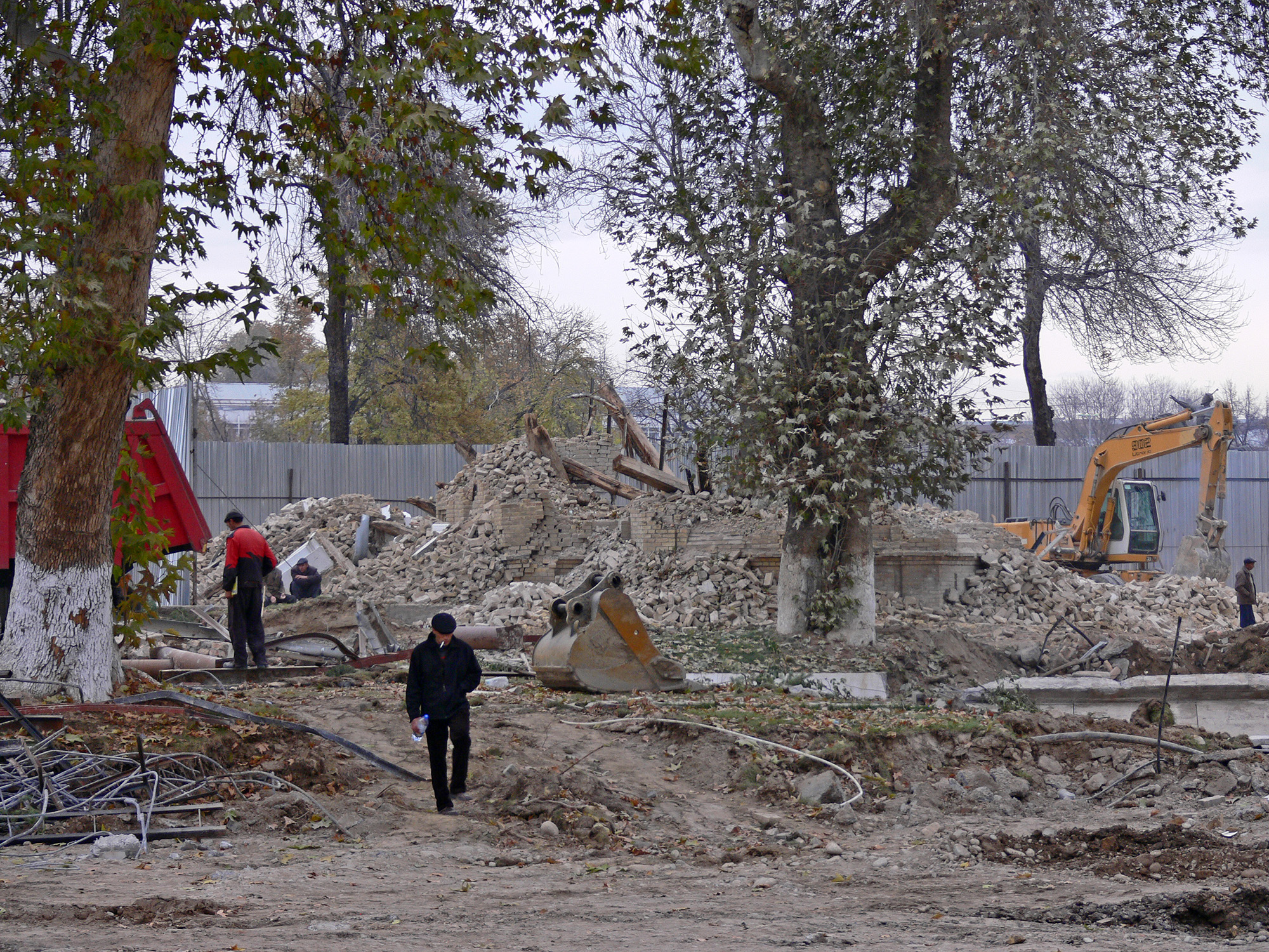 В общем, смотрите фотографии. Вот так в Ташкенте 18-21 ноября 2009 года уничтожали «охраняемый государством» уникальный архитектурный объект.