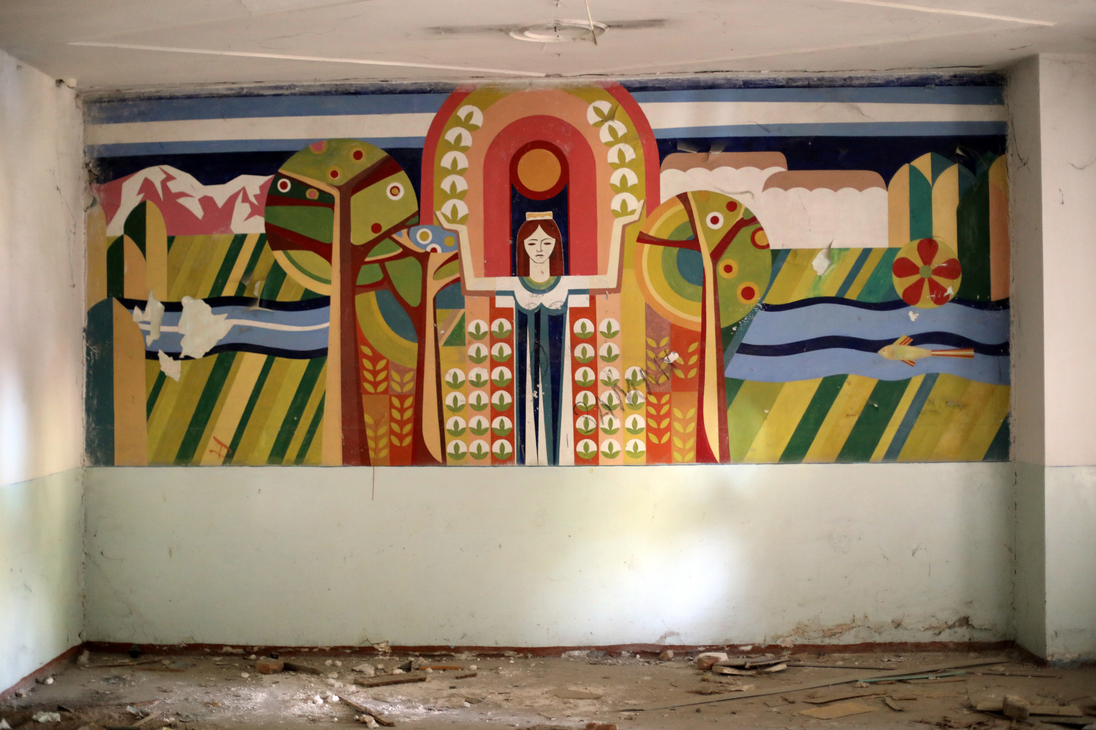 А опустело здание лет десять назад, когда в Узбекистане стала осуществляться программа по переводу учащихся из школ и техникумов в лицеи и колледжи. С началом нового учебного года учеников отправили в новые учебные заведения, и в стенах индустриального техникума наступила непривычная тишина. Но еще долго внутри сидел сторож — охранял мебель и оставшиеся учебные принадлежности, гонял фотографов, угрожая вызвать милицию. Потом не стало и его, как и оберегаемого им имущества.