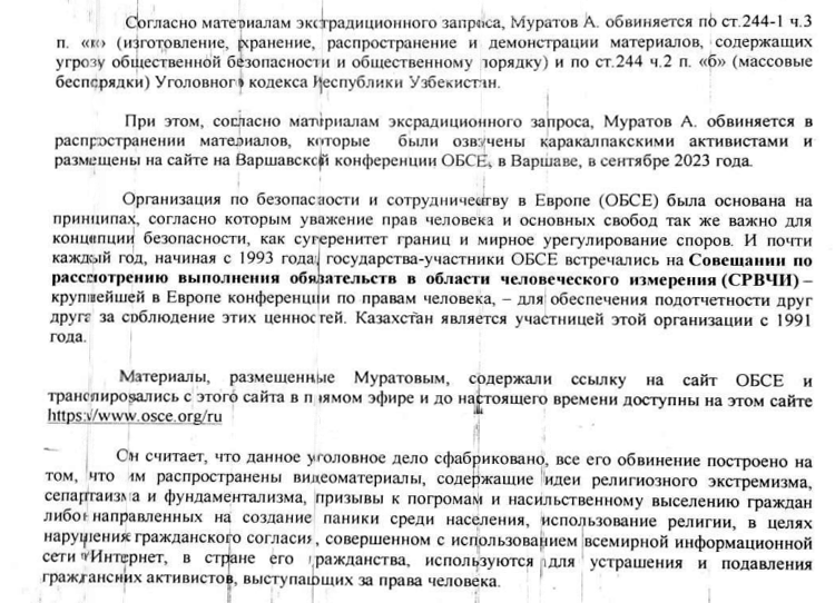 Письмо из алматинского СИЗО от Акылбека Муратбая (Муратова)