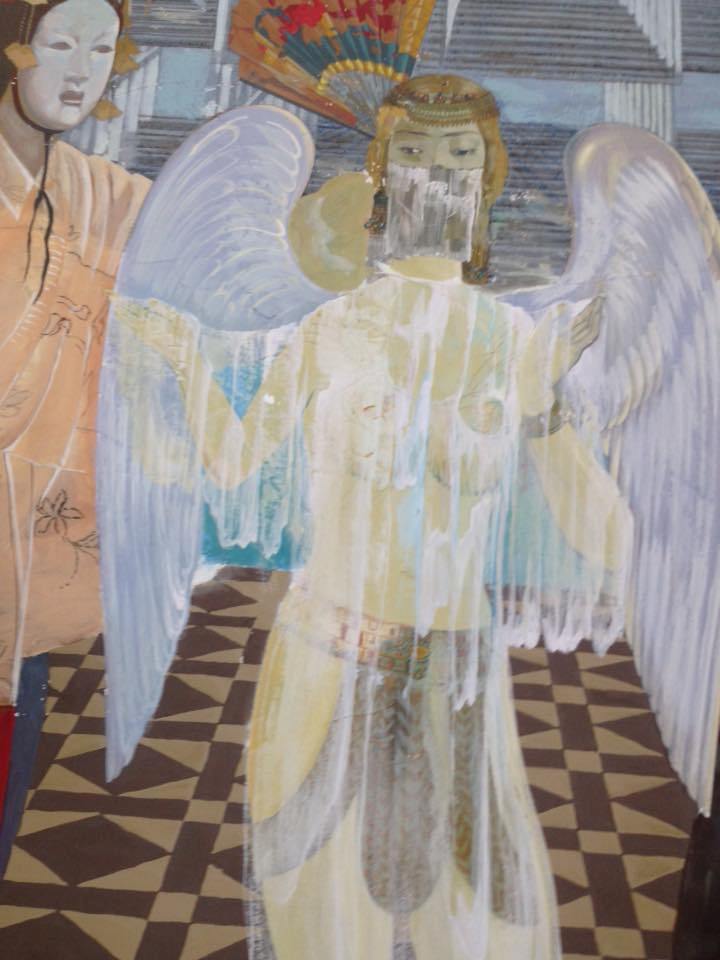 Фрагмент оригинальной фрески Баходыра Джалалова в Кокандском театре до «реставрации»
