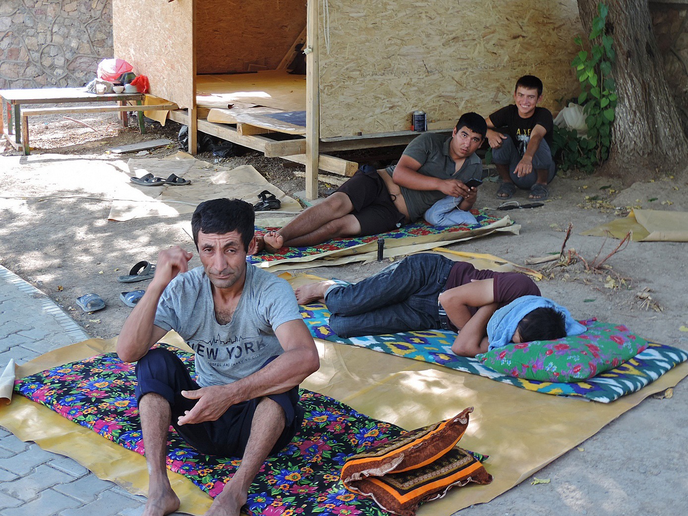 Тем временем, к 20 июля парк был основательно разворочен, и тут финансирование строительных работ по неизвестной причине прекратилось. Половина рабочих разъехалась по домам, вторая половина осталась жить в парке. По словам одного из них, исходя из договоренности с администрацией города, каждый из них должен получать по 100 тысяч сумов (почти по $9,5) в день. Таким образом, к сегодняшнему дню заказчик задолжал каждому по миллиону.
