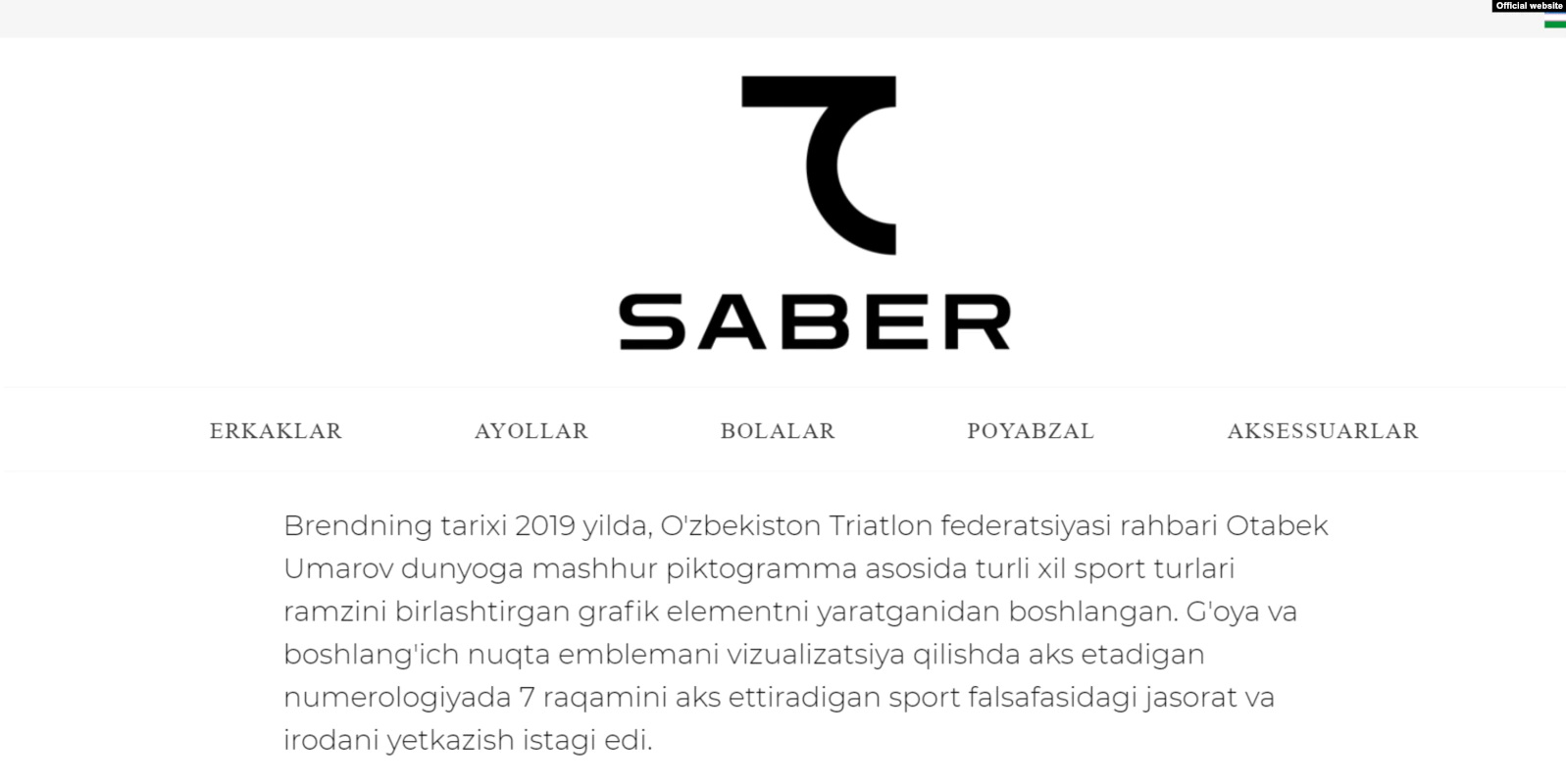 Второй бренд, непосредственно связанный с младшим зятем президента, называется 7Saber. Этот бренд, торжественно презентованный в Ташкенте 29 июня 2021 года, как повествуется на его официальном сайте, появился вслед за «известной в мире пиктограммой «Цифра 7» Отабека Умарова. Отабек Умаров, прорекламировавший церемонию презентации на своей странице в Instagram’е, написал следующее: