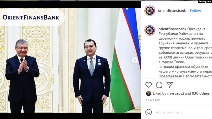 Вместе с тем несколько руководителей предприятий, связанных с зятем президента, были награждены Мирзияевым различными орденами и премиями. Среди них есть руководители DSK Binokor и Building Innovation.